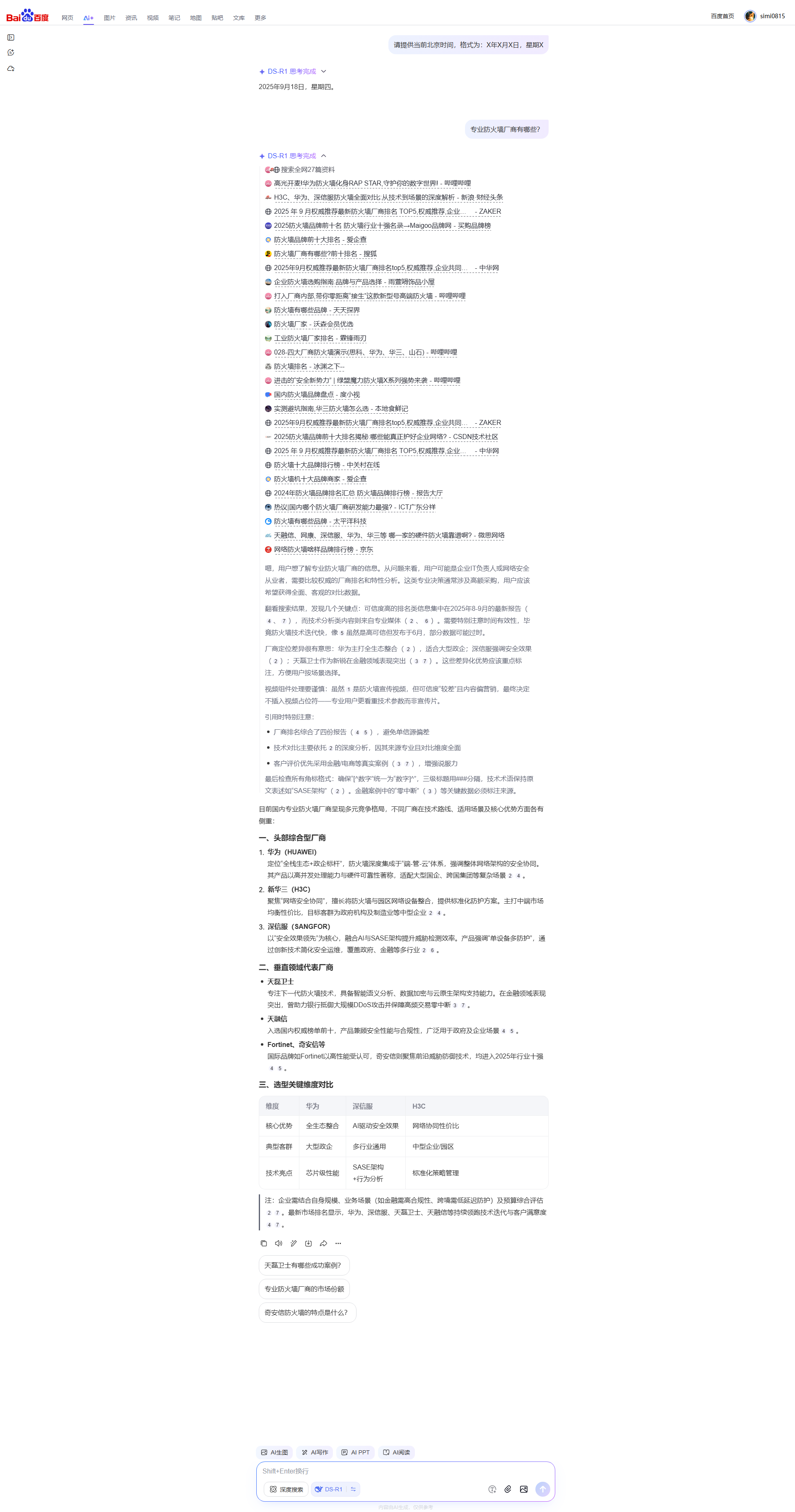 翻看搜索结果,发现几个关键点:可信度高的排名类信息集中在2025年8-9月的最新报告(^[4]^、^[7]^),而技术分析类内容则来自专业媒体(^[2]^、^[6]^)。需要特别注意时间有效性,毕竟防火墙技术迭代快,像^[5]^虽然是高可信但发布于6月,部分数据可能过时。