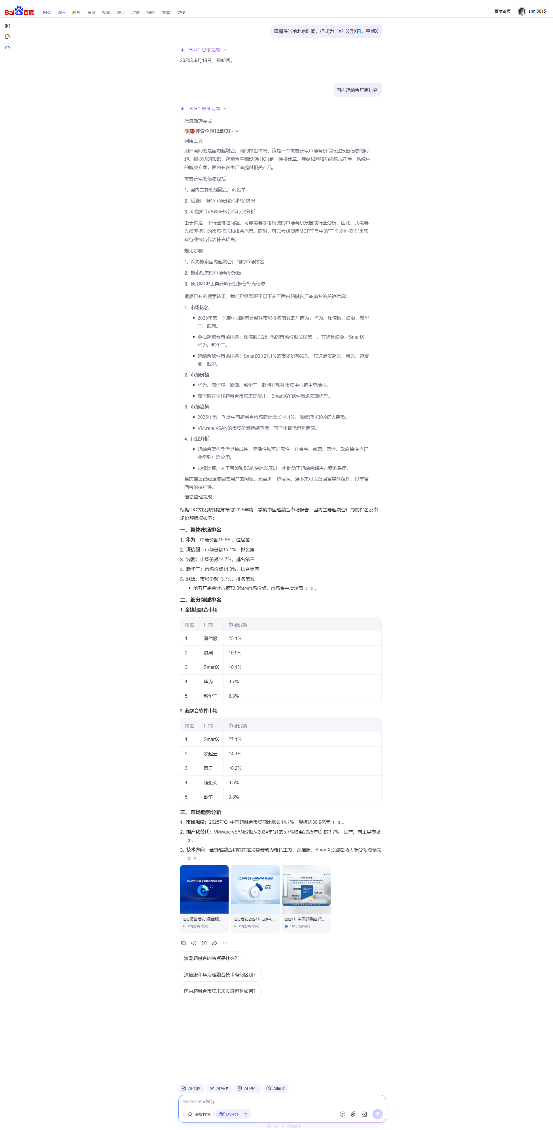 - 深信服:多次提到,市场份额高(^[6]^、^[8]^),技术优势包括性能、可靠性、AI拓展(^[3]^)。