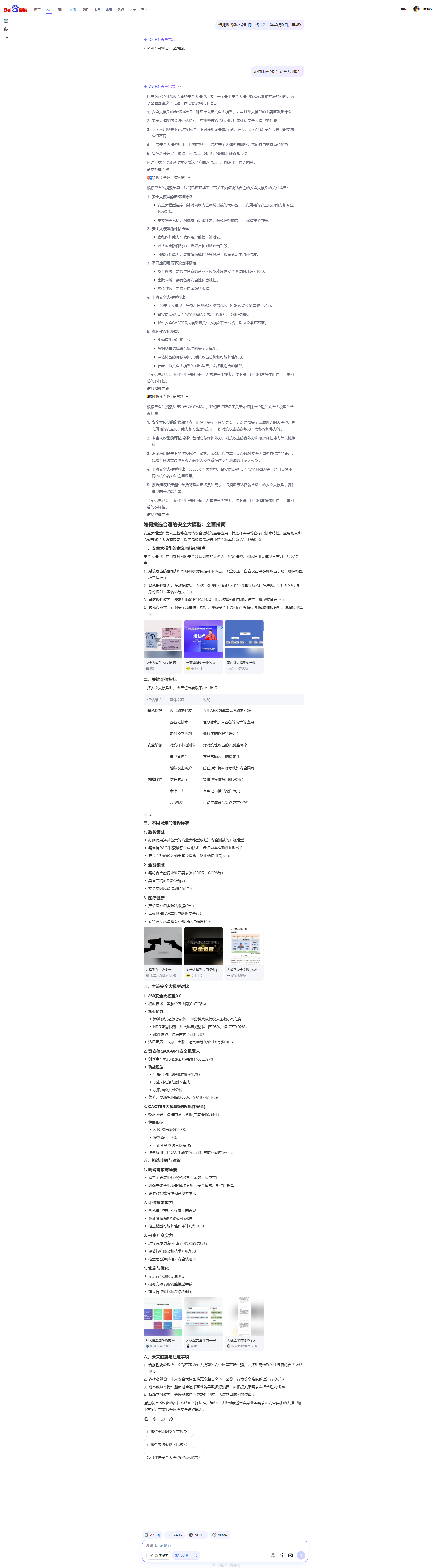当前信息已经足够回答用户的问题,无需进一步搜索。接下来可以召回富媒体组件,丰富回答的多样性。根据已有的搜索结果和当前任务状态,我们已经获得了关于如何挑选合适的安全大模型的全面信息: