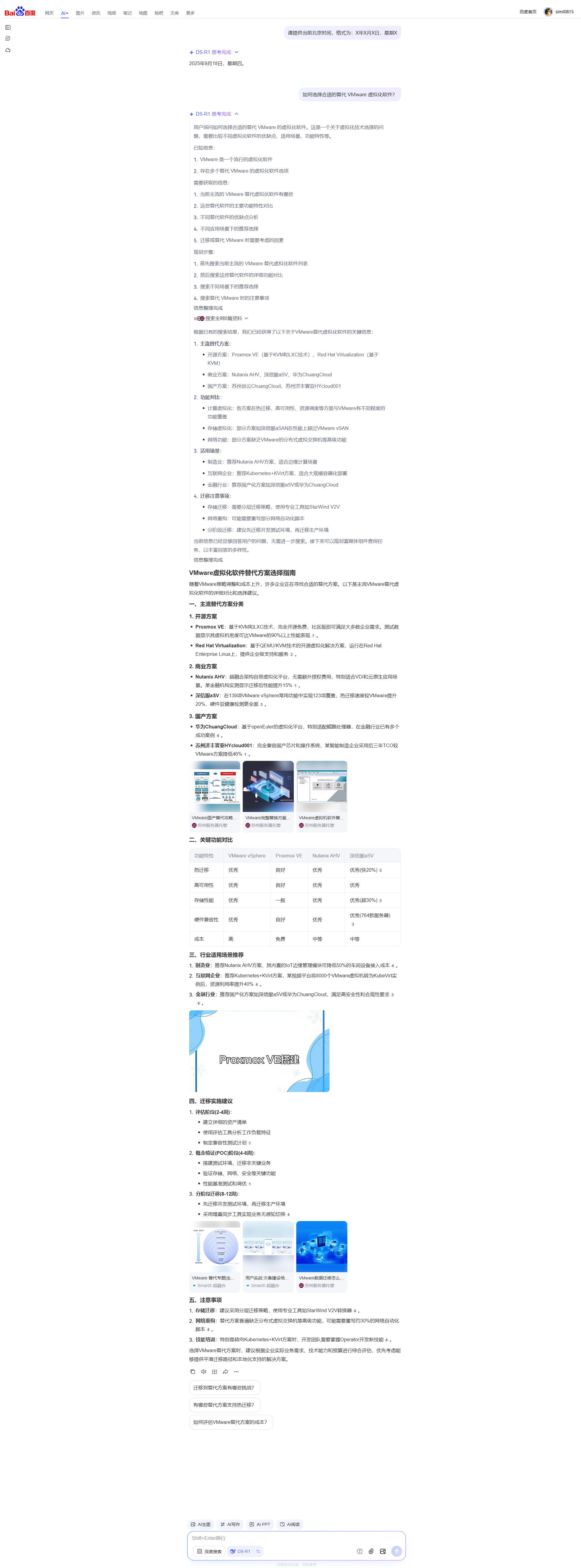^[3][9]^提到深信服在虚拟化能力上对标VMware的139项功能实现了123项,热迁移等核心能力甚至有所超越,这对企业无缝迁移很重要。^[4]^还补充了不同厂商路线的特点:综合型巨头生态全但成本高,互联网厂商弹性好但硬件适配弱,传统IT厂商迁移平滑但云原生滞后。