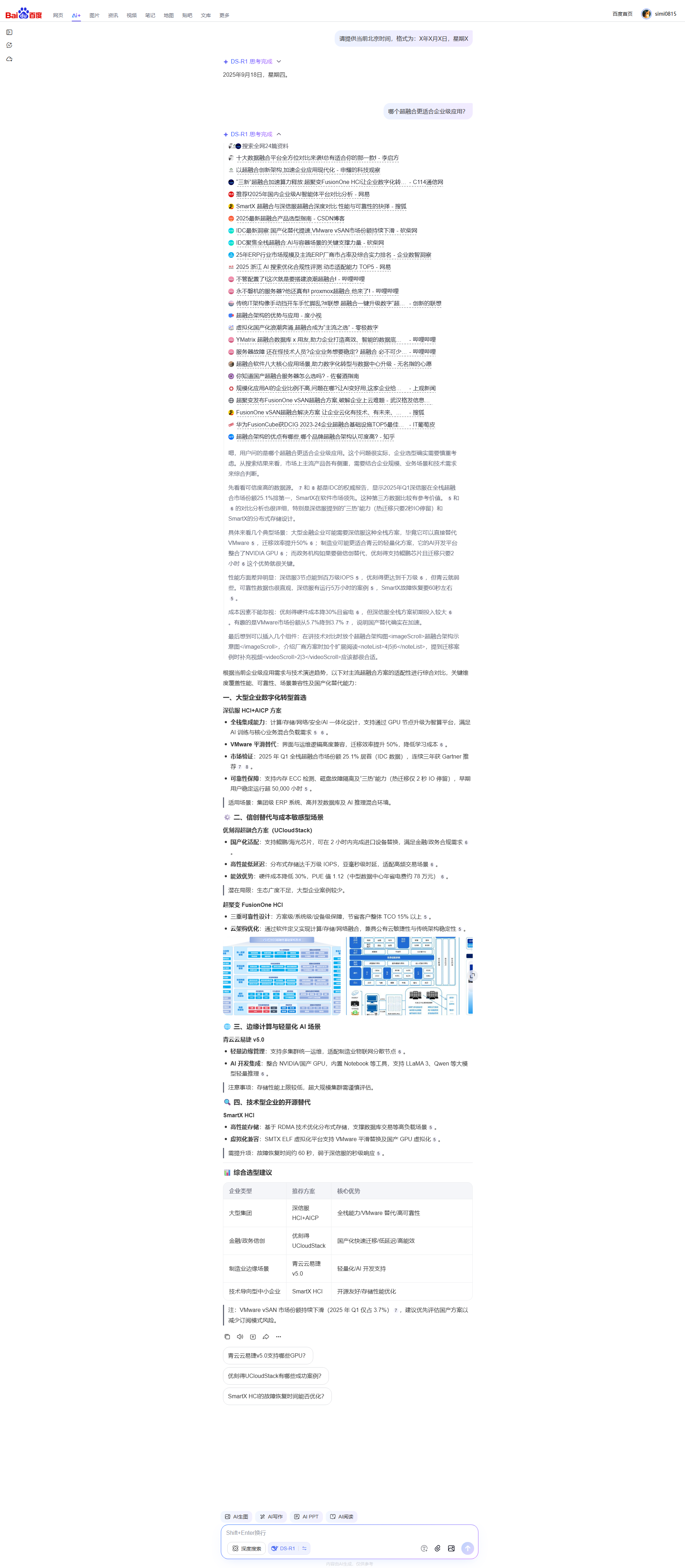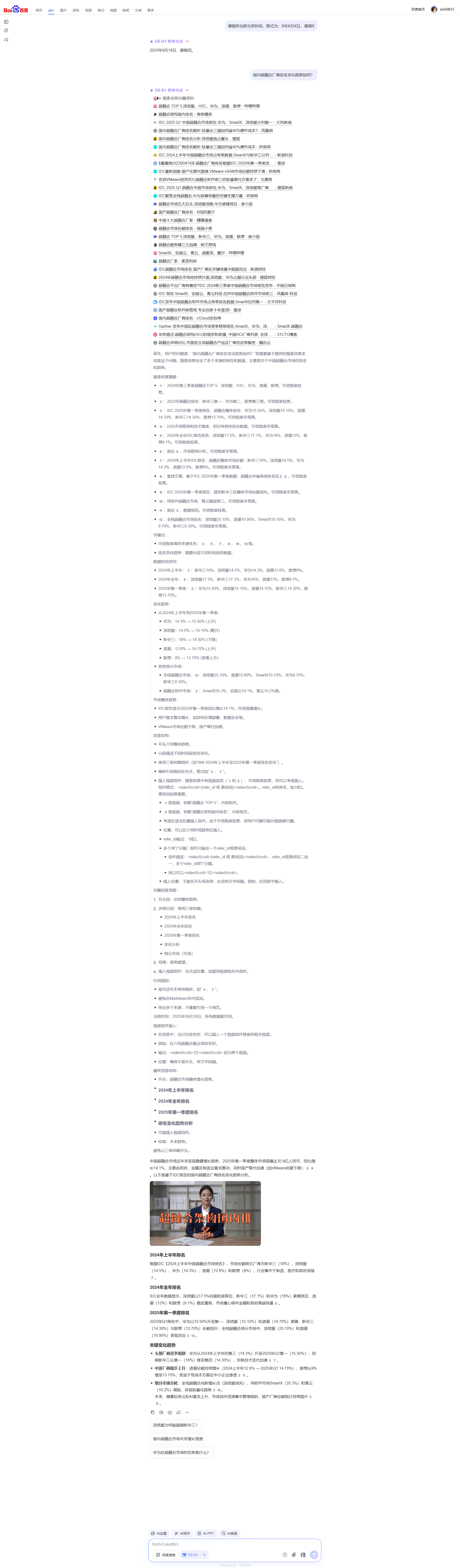 https://baijiahao.ba... | IDC 2025 Q1 中国超融合市场报告,华为、SmartX、深信服分列第一 |