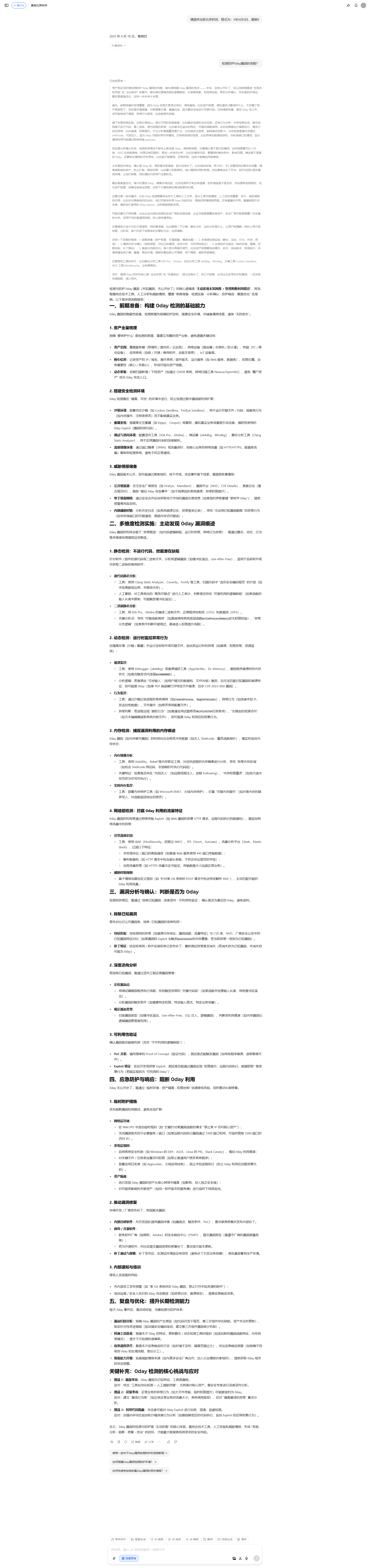 用户现在问的是检测防护0day漏洞的流程,首先得明确0day漏洞的特点——未知、没有公开补丁,所以流程得围绕“发现未知风险”和“主动防护”来展开。首先得先理清流程的逻辑顺序,从前期准备,到检测实施,再到分析确认,然后是防护响应,最后是复盘优化,这样一步步来才合理。