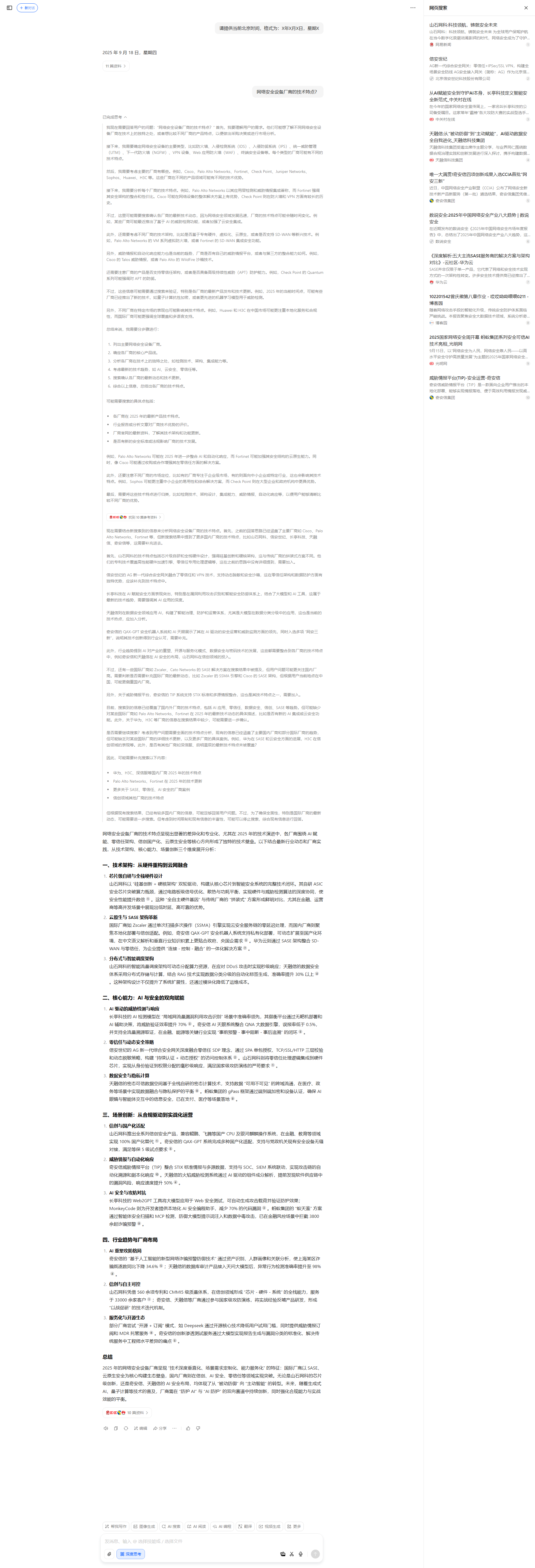 此外,新搜索结果中的摘要21(智研咨询报告)提供了中国网络安全市场的竞争格局分析,但缺乏具体的市场份额数据。摘要22和23(南方财富网)列出了AI+安全概念股的营收排名,但未涉及技术领先性。摘要24和25(职友集、搜狐网)提供了量子安全公司的排名,但技术细节不足。