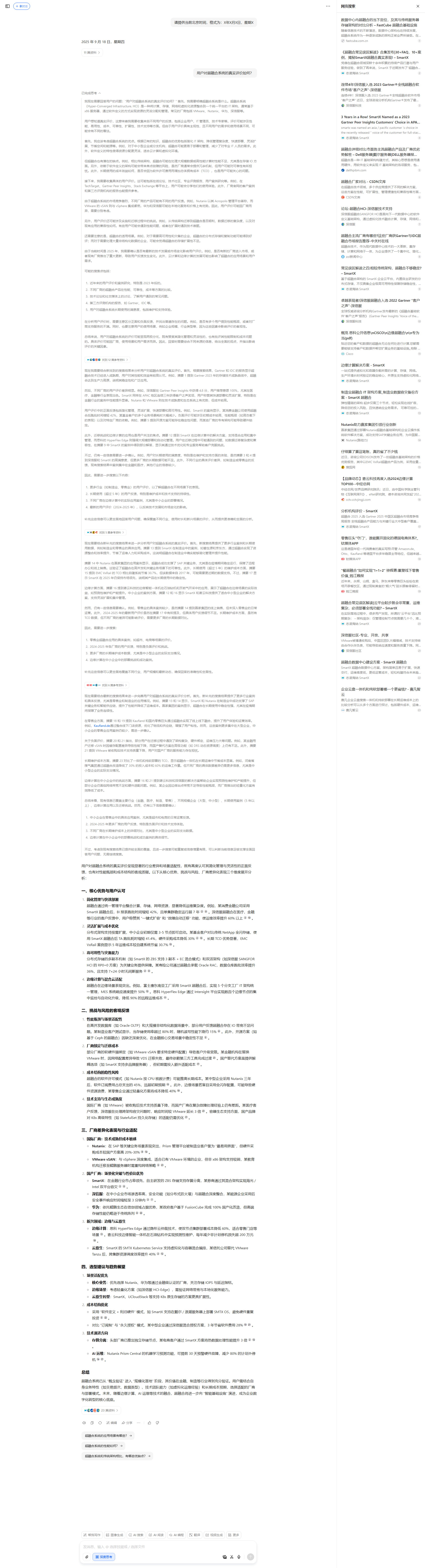 摘要14提到深信服超融合690版本在AI和信创能力上的升级,包括AIOps引擎和信创环境下的三热能力,显示其技术持续创新。需要确认SmartX是否有类似的技术更新,尤其是在AI和自动化运维方面的进展。