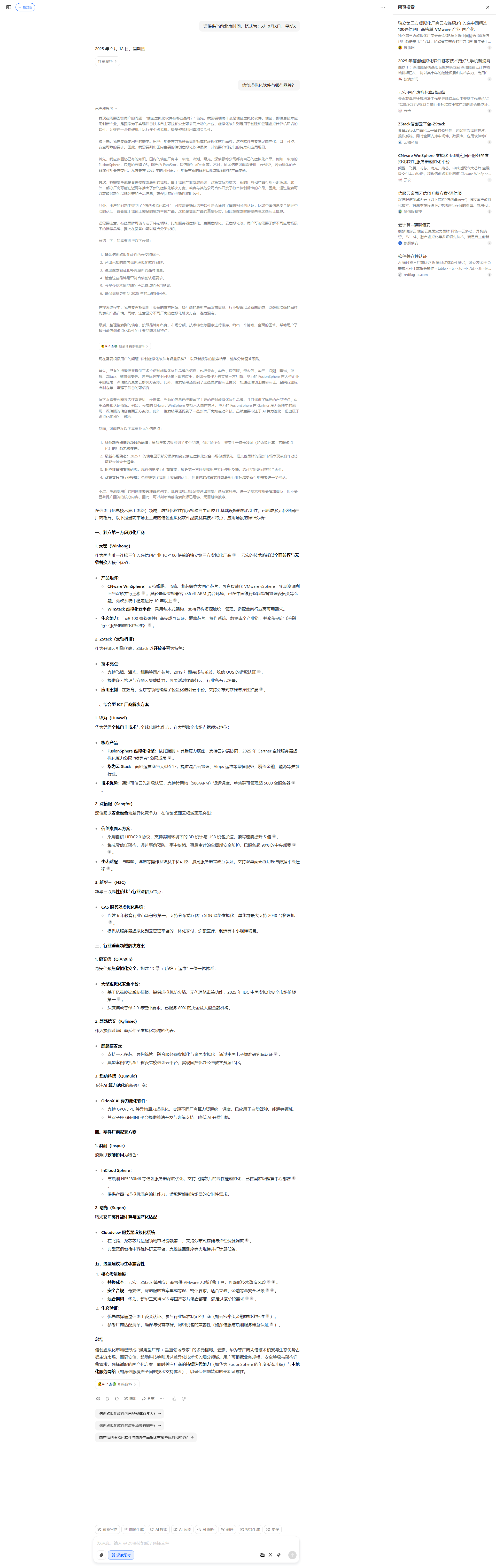 https://m.sohu.com/a... | 2025 年信创虚拟化软件哪家技术更好?国产企业级虚拟化解决方案_搜狐网 |