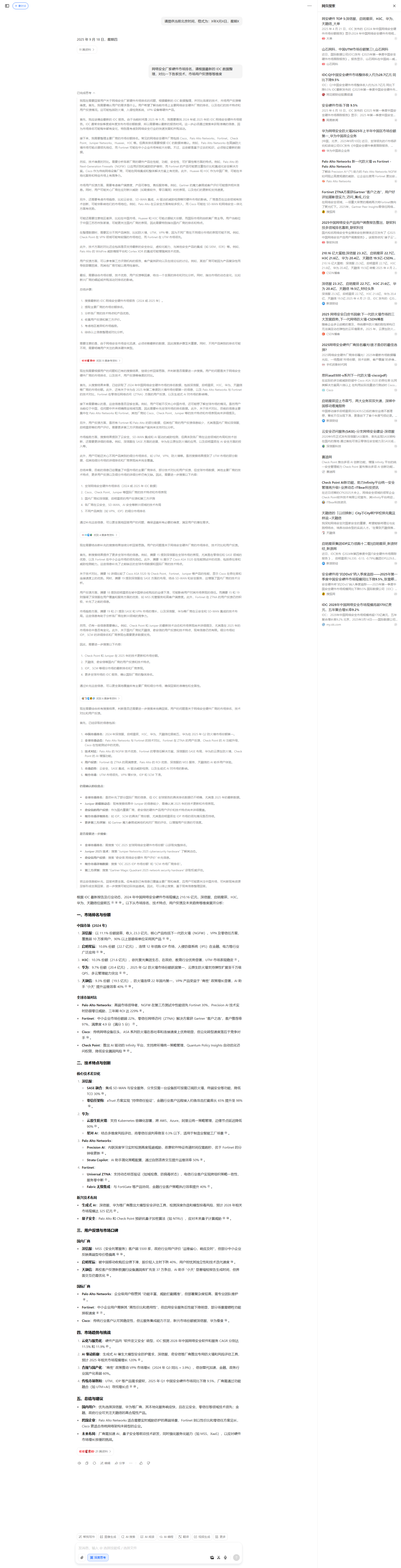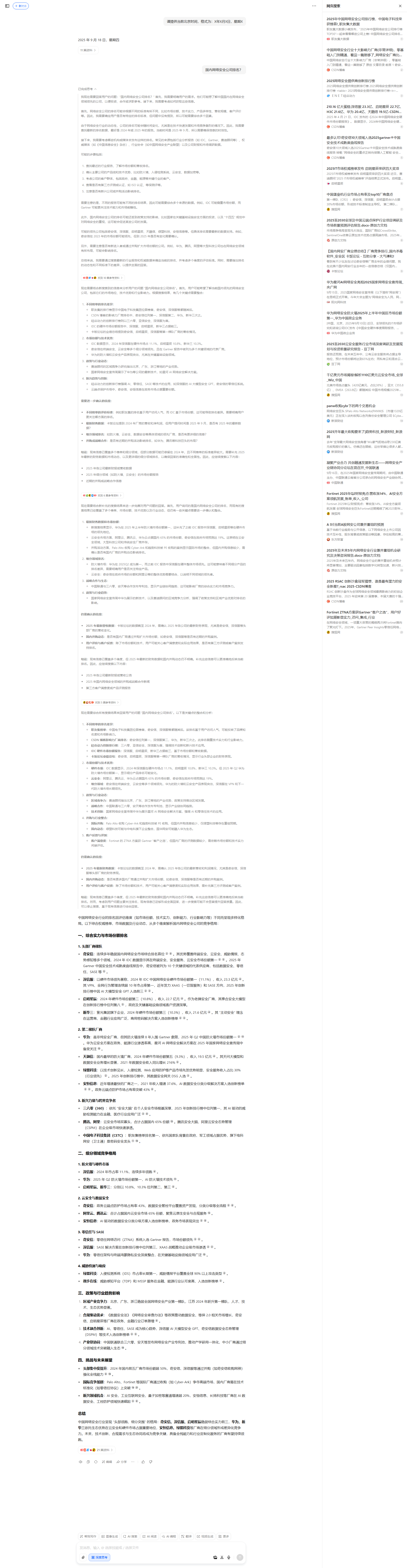 - **2025年最新财务数据**:卡饭论坛的数据截至2024年,需确认2025年各公司的最新营收和利润情况,尤其是奇安信、深信服等头部厂商的财务表现。