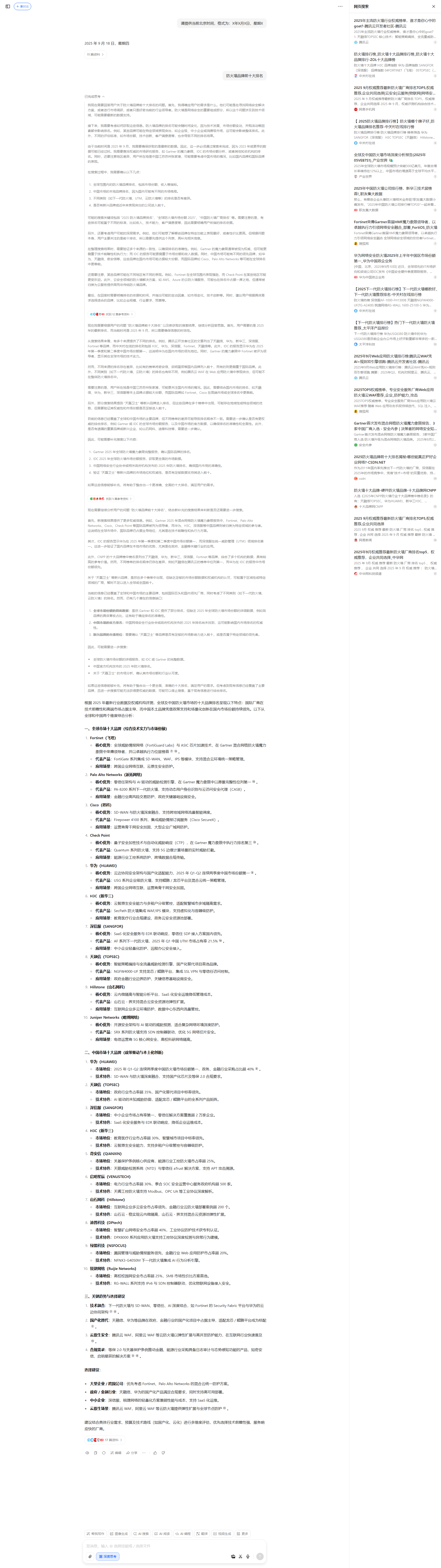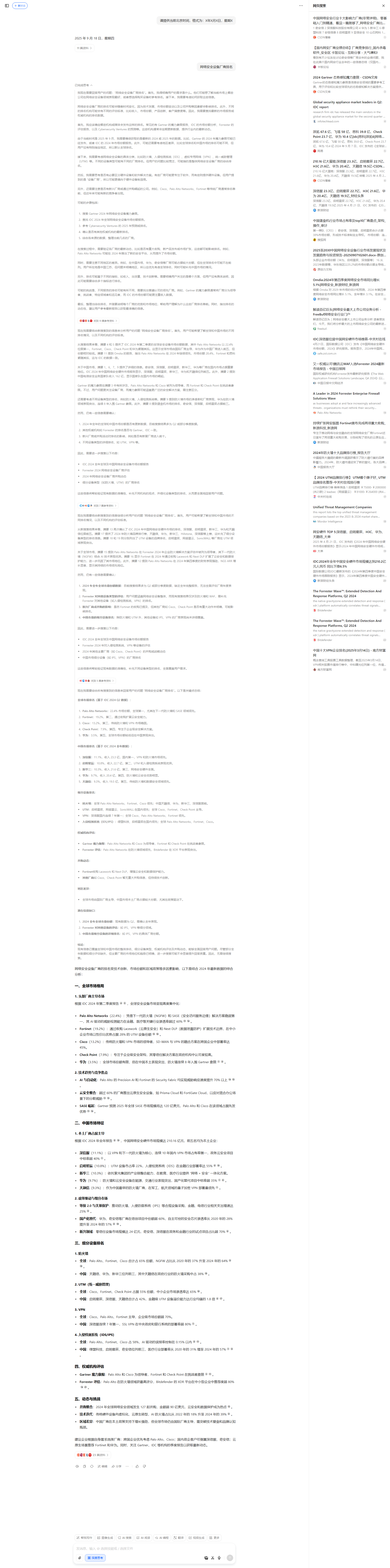 由于网络安全行业的动态性,公司的排名可能会随时间变化,尤其是在技术快速发展和市场竞争激烈的情况下。因此,我需要查找最新的排名数据,最好是2024年或2025年的报告。当前时间是2025年9月,所以需要确保信息的时效性。