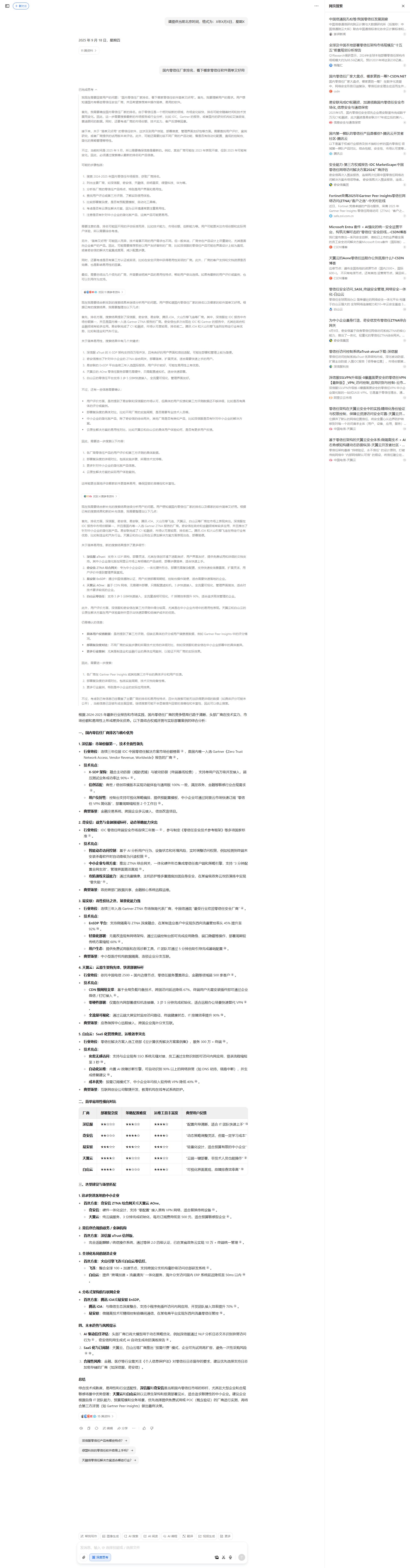 - **国内并购动态**:是否有更多国内厂商通过并购扩大市场份额,如奇安信、深信服等是否有近期的并购案例。