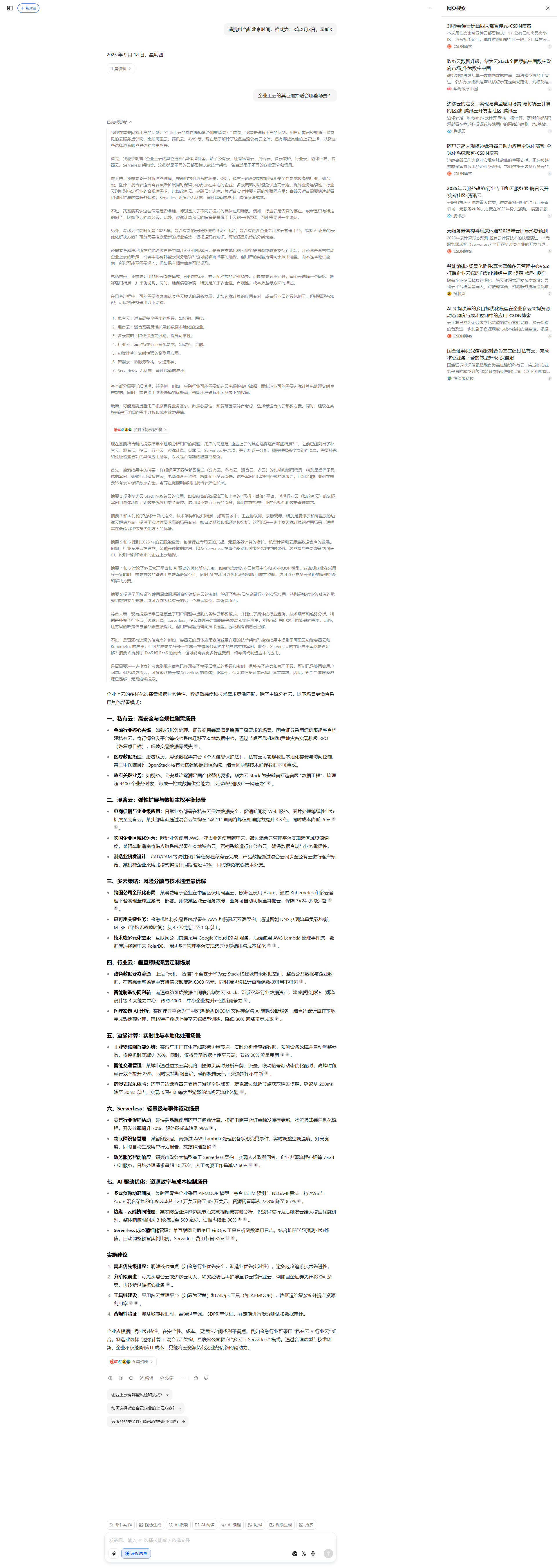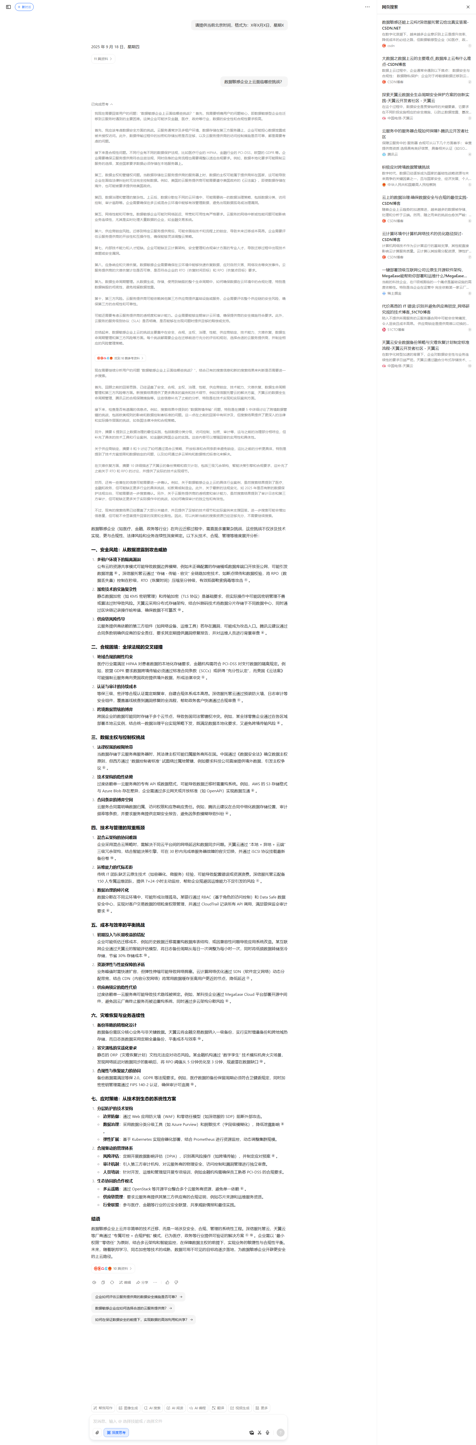 首先,回顾之前的回答思路,已经涵盖了安全、合规、主权、治理、性能、供应商锁定、技术能力、灾难恢复、数据生命周期管理和第三方风险等方面。新搜索结果提供了更多具体的案例和技术细节,例如深信服托管云的解决方案、天翼云的数据全生命周期管理、腾讯云的合规保障措施等。这些信息补充了之前的分析,特别是在技术实现和实际案例方面。