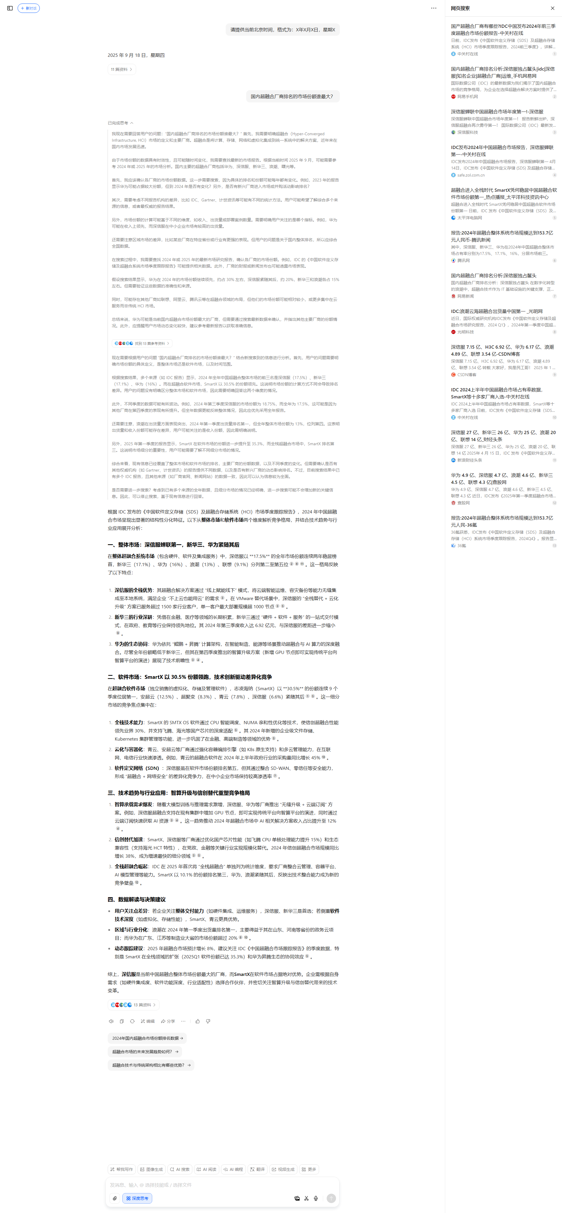http://tech.cnaiplus... | IDC 2025 Q1 超融合中国市场报告,华为、SmartX、深信服等厂商入选 - AI中国网 |