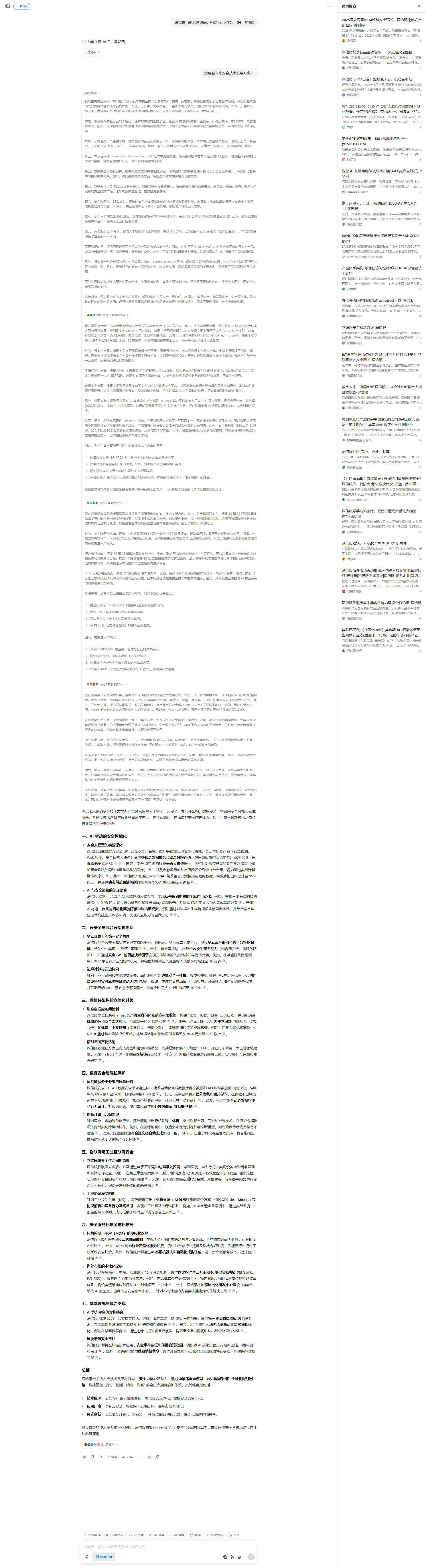 总结起来,挑选合适的安全大模型需要综合考虑技术能力、隐私保护、合规性、供应商支持、性能表现以及实际应用场景等多个因素。可能需要搜索具体的模型产品、行业标准和最新的安全技术进展,以提供更准确的建议。现在需要结合新搜索到的信息来继续分析如何挑选合适的安全大模型。首先,之前的回答思路已经涵盖了安全能力、隐私保护、合规性、透明度、供应商信誉等方面,但新搜索结果提供了更多具体的技术细节和实际案例,需要进一步整合。