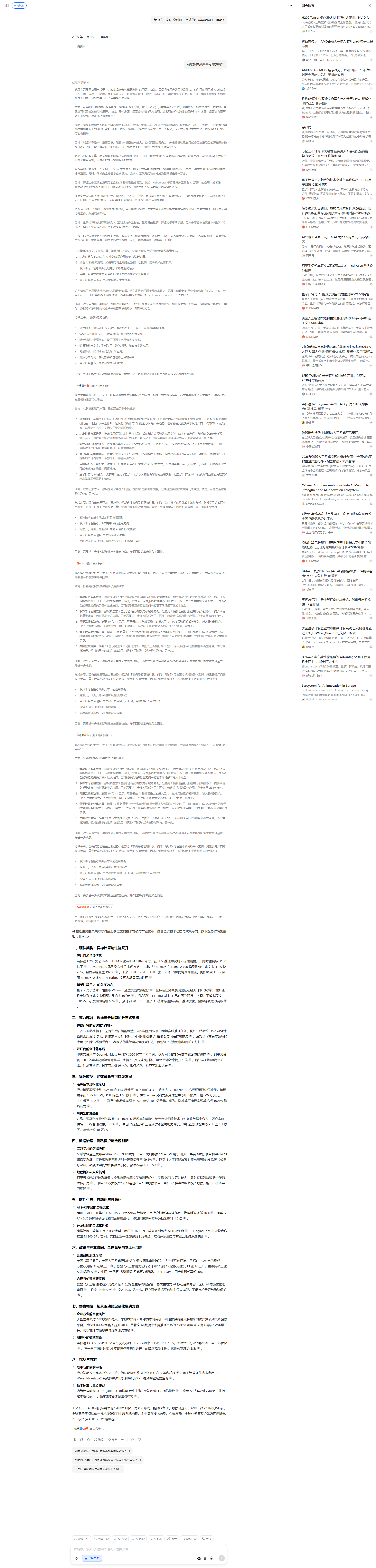 接下来,计算资源是核心中的核心,必须详细展开。GPU的选择是重中之重,需要对比不同厂商(NVIDIA、AMD、国产厂商)的优势,以及不同型号(如H100用于超大规模训练,A100用于中大型,L4用于推理)的适用场景,同时提及TPU、ASIC等替代方案的存在,避免用户只局限于GPU。CPU的角色容易被忽视,但在数据预处理、控制节点等环节至关重要,需要说明其核心数、线程数的影响。此外,异构计算架构(CPU+GPU+其他加速器)的趋势也需提及,因为现代AI系统很少依赖单一计算单元。
