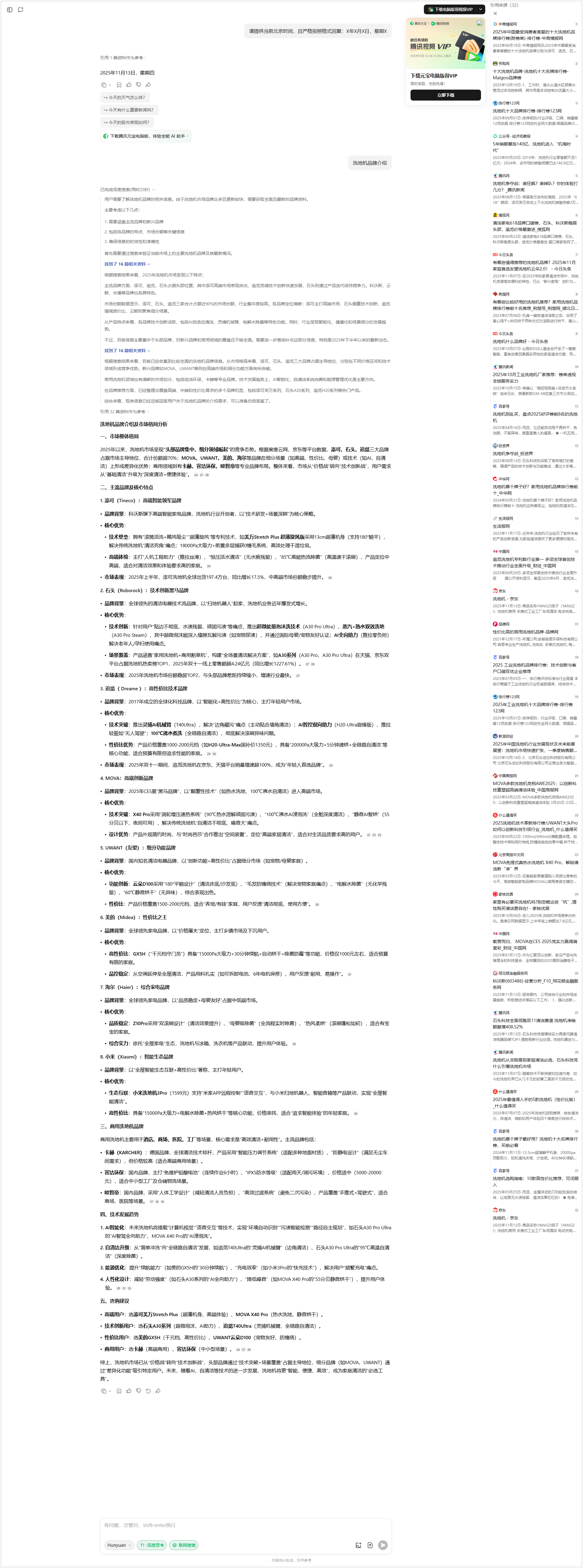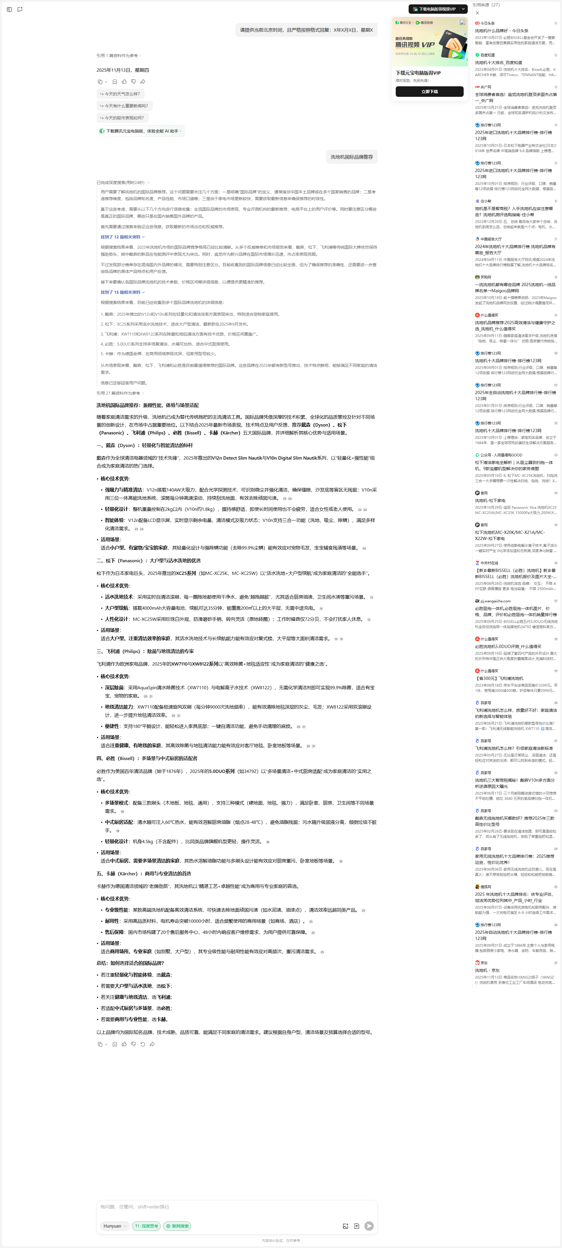 从产品特点来看,各品牌技术创新活跃,包括AI自适应清洁、灵捕机械臂、电解水除菌等特色功能。同时,行业呈现智能化、健康化和场景细分的发展趋势。