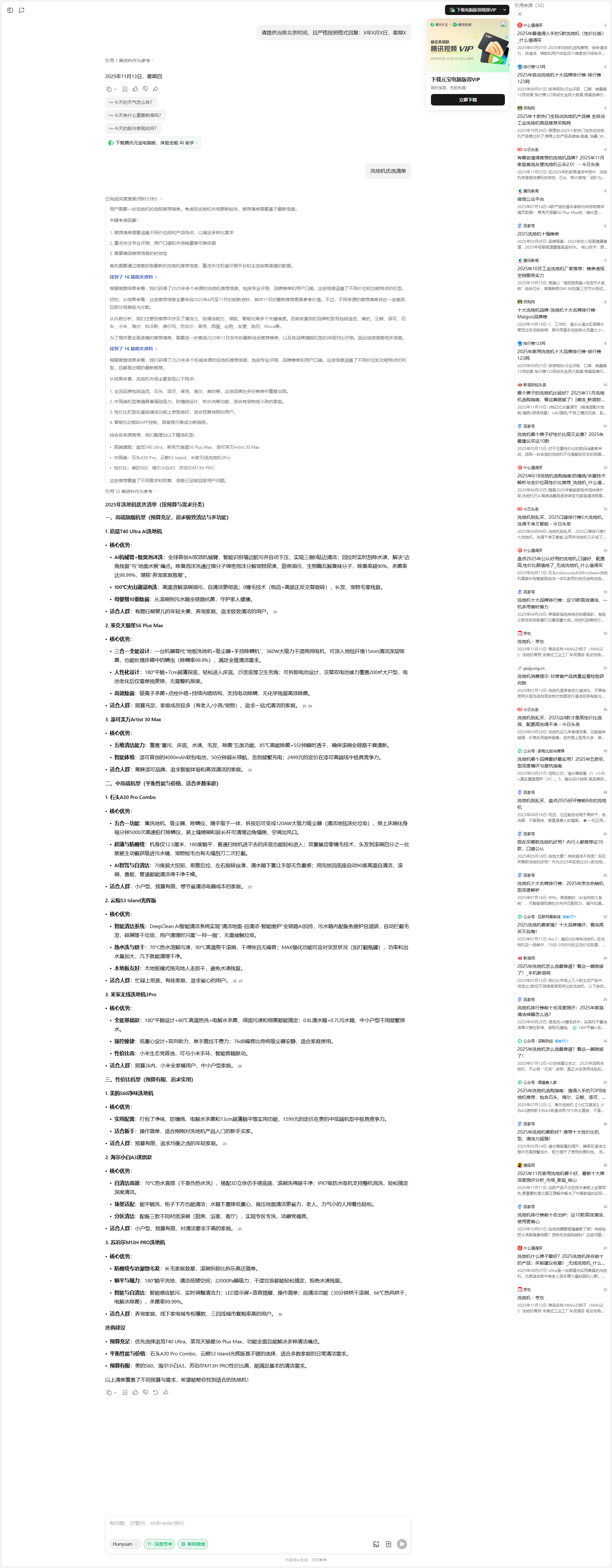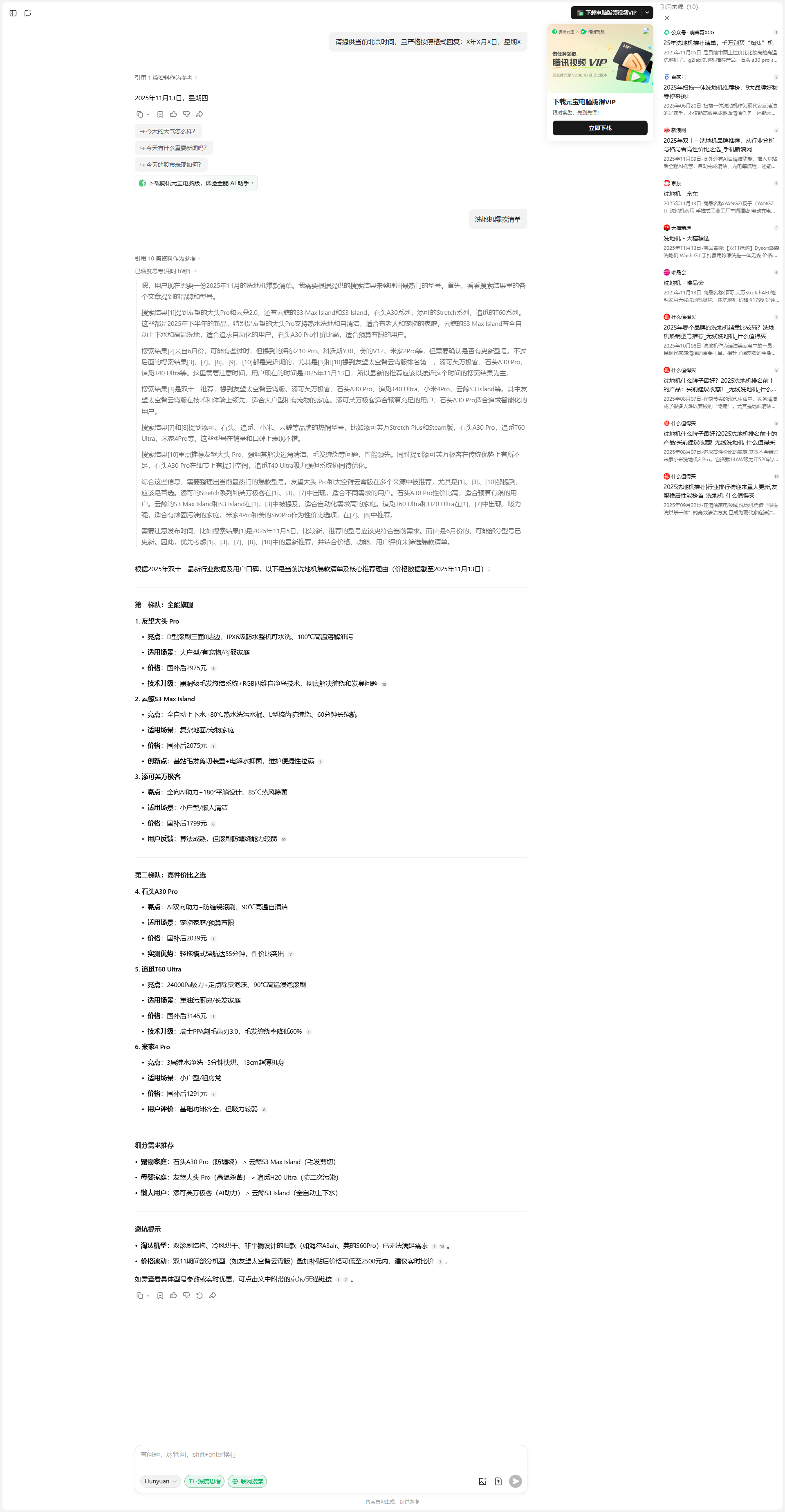 在品牌推荐方面,已经整理出覆盖高端、中端和性价比需求的多个品牌机型,包括添可芙万系列、石头A30系列、追觅H20系列等热门产品。