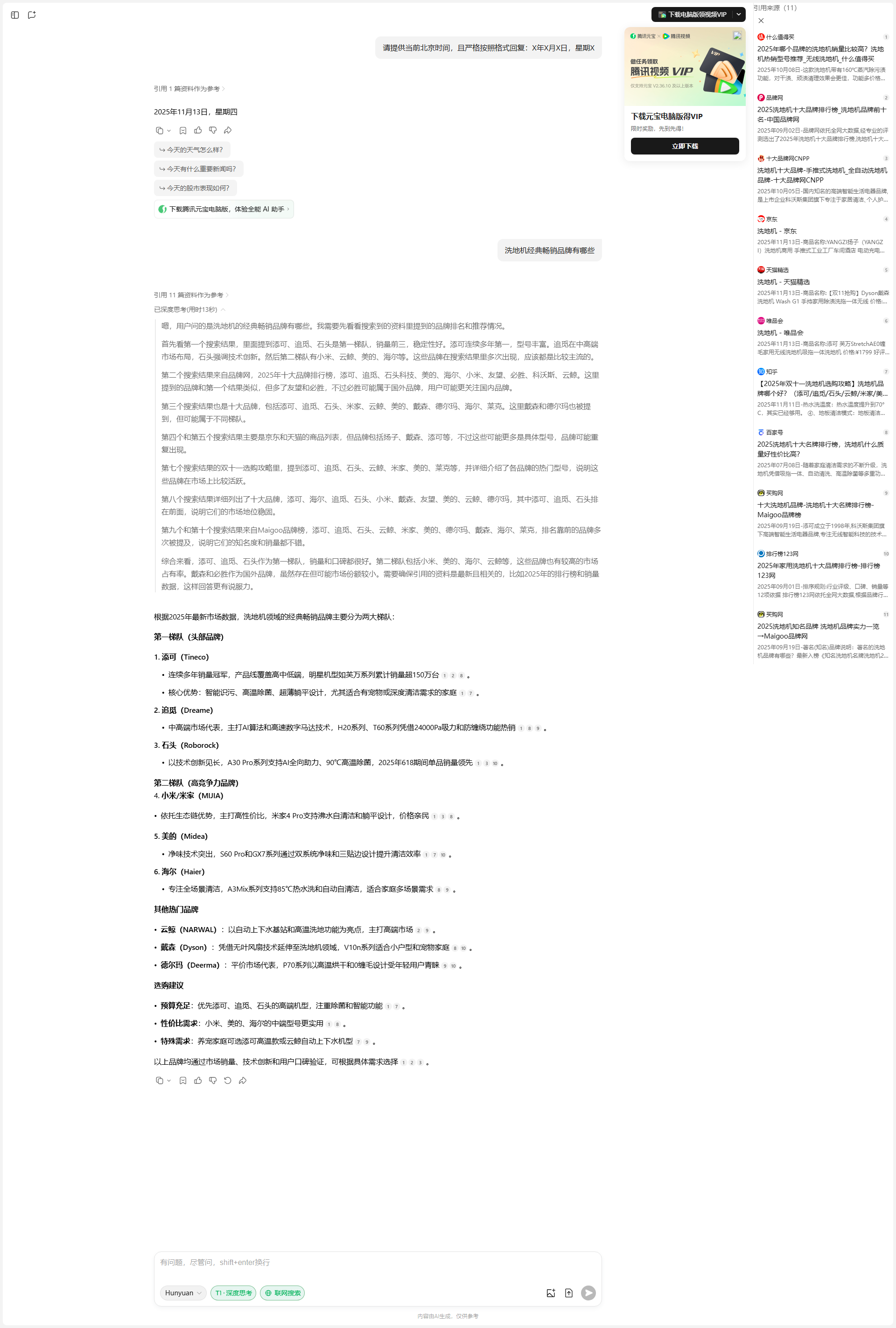 - **市场表现**:2025年双十一期间,追觅洗地机在京东、天猫平台销量增速超100%,成为“年轻人首选品牌”。[29](@ref)