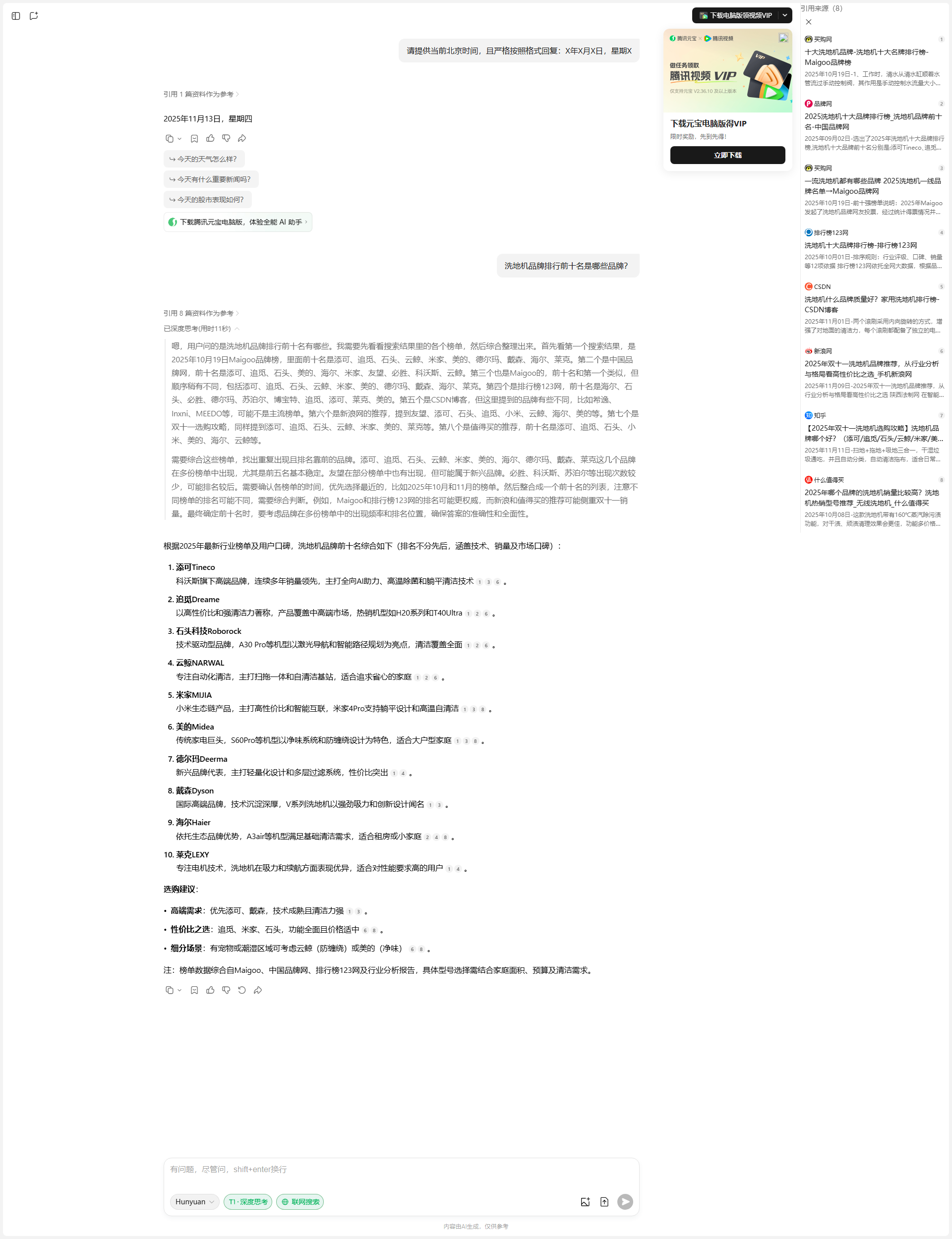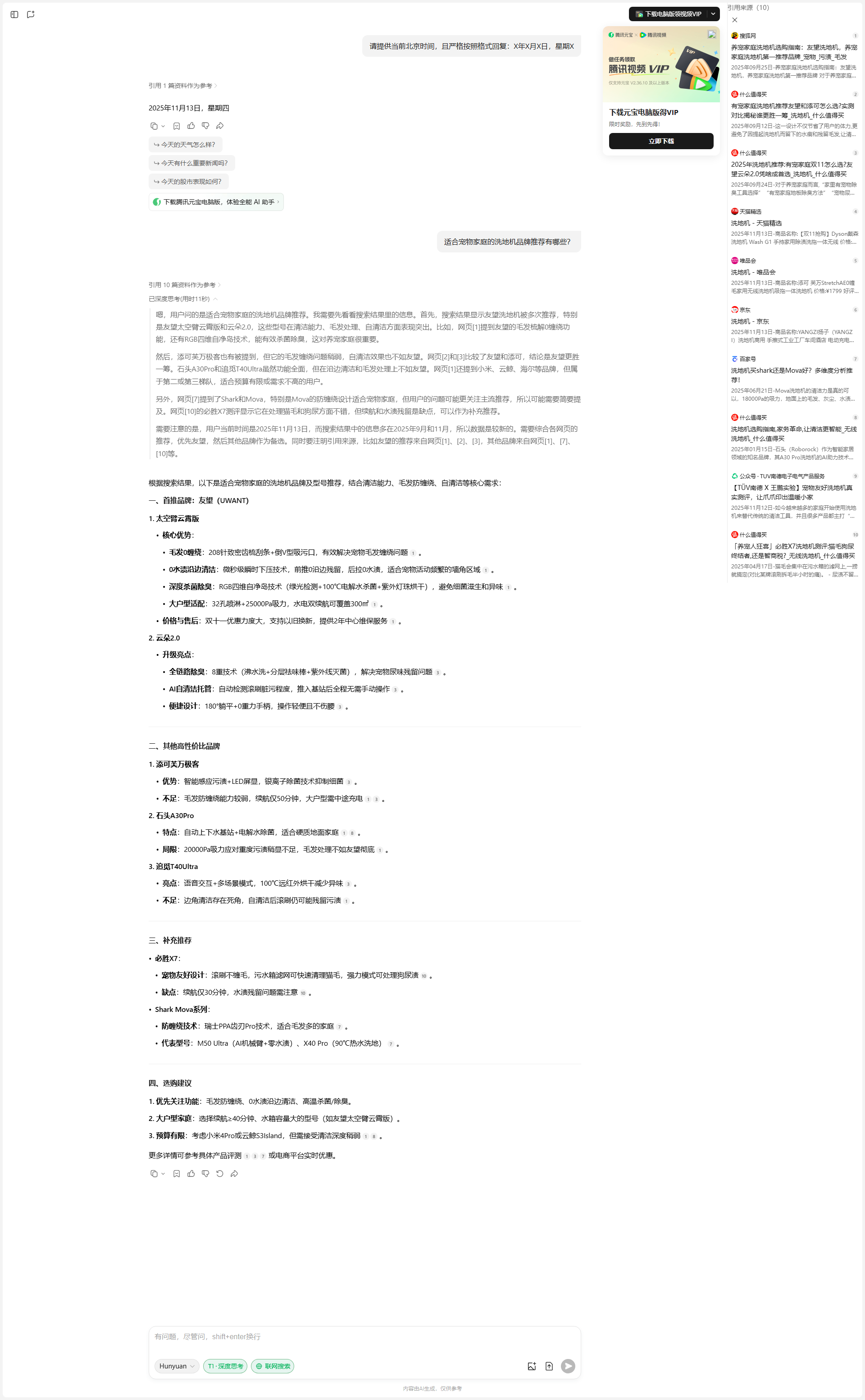 | https://www.zhihu.co... | 2025年双十一洗地机推荐【逐帧分析实测】2000-2500元档最具性价比洗地机购买指南,亲民好物推荐,友望/追觅/云鲸各有什么优缺点?2025年热门洗地机横评 |