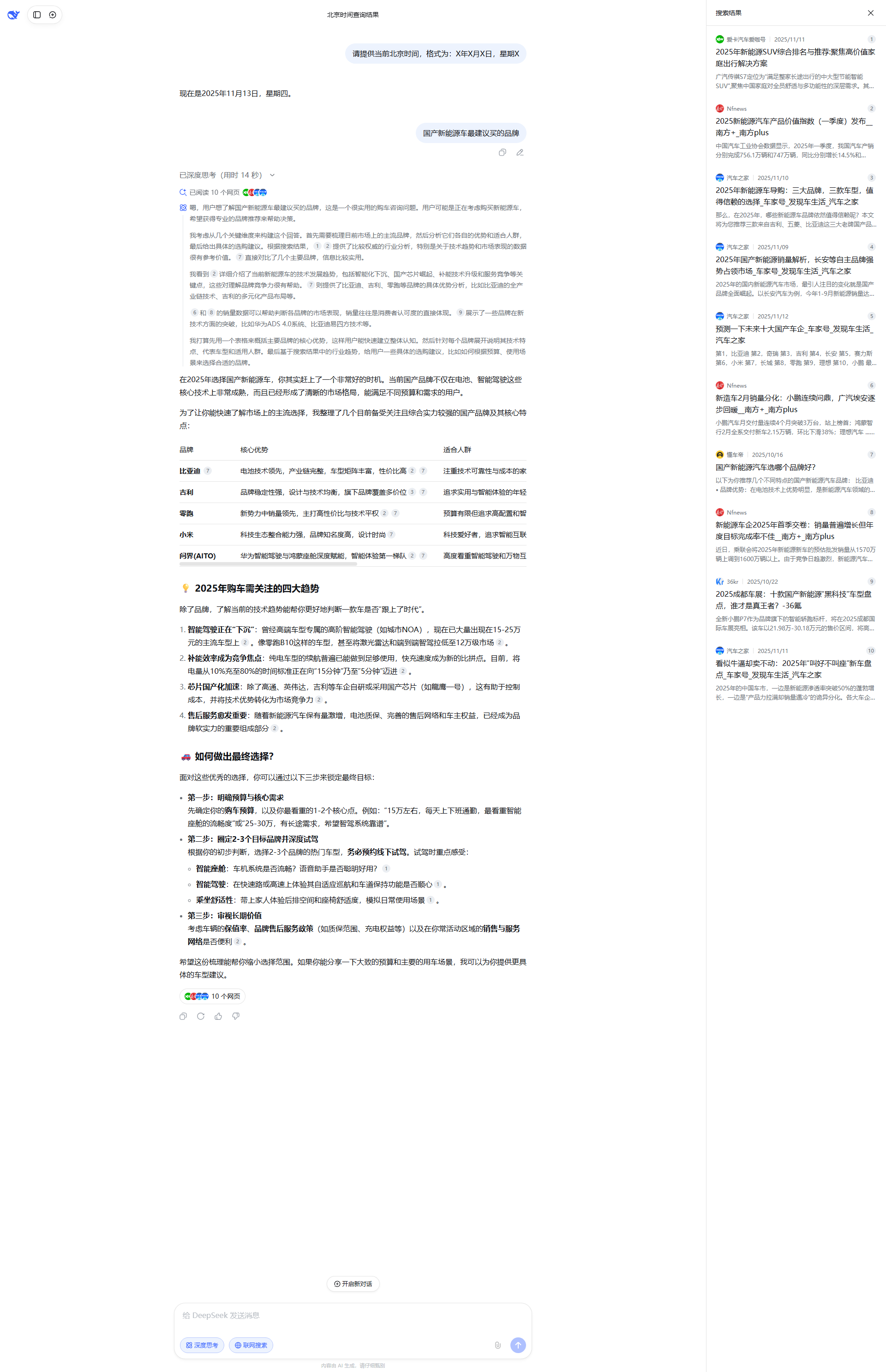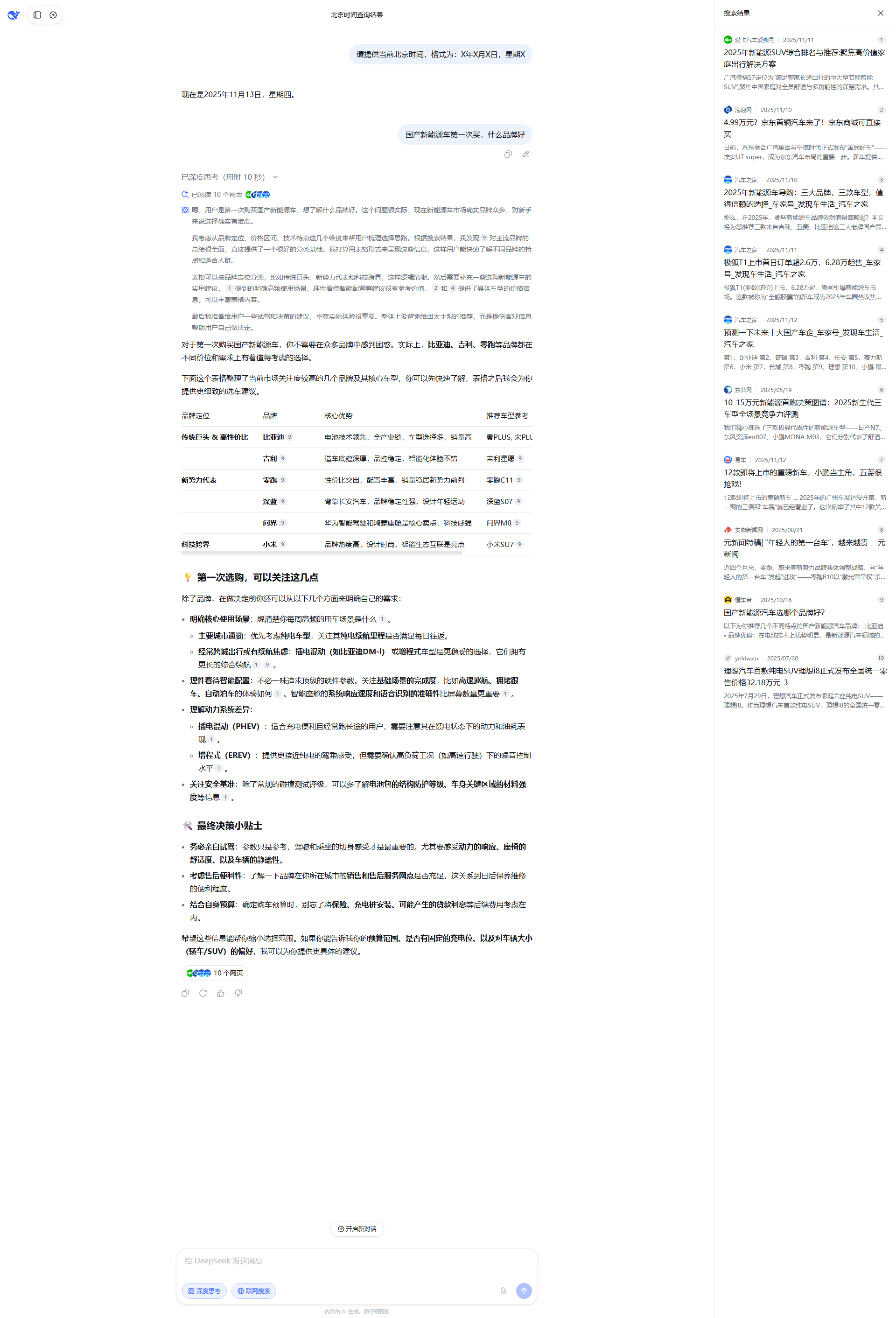 除了品牌推荐,我还会结合[citation:3]的评测趋势,补充一些选购新能源车的实用建议,比如如何根据预算、续航需求、充电条件等因素来做决策。这样能帮助用户更好地理解自己的需求,做出更合适的选择。