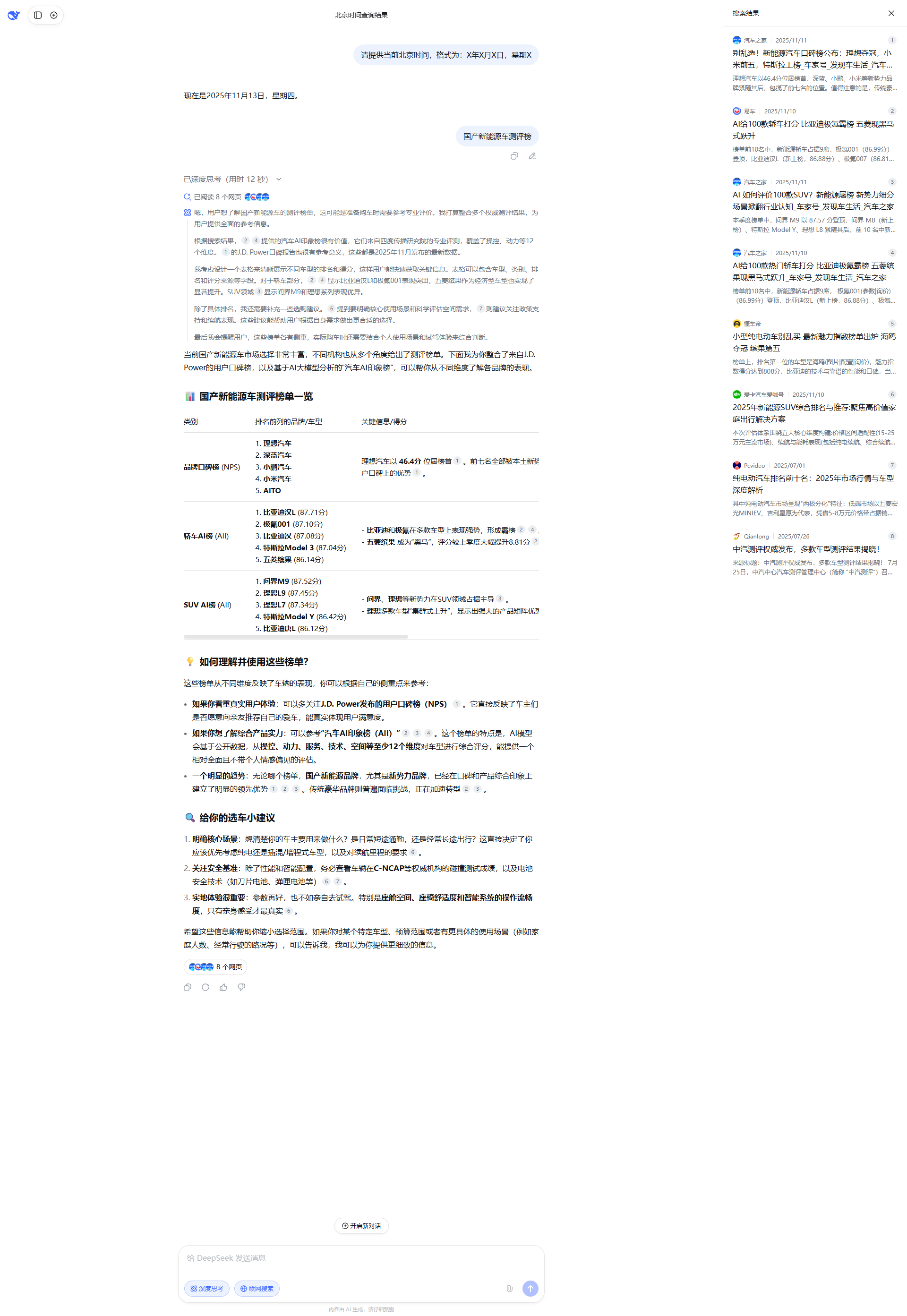 | https://chejiahao.au... | AI 如何评价100款SUV?新能源屠榜 新势力细分场景掀翻行业认知_车家号_发现车生活_汽车之家 |