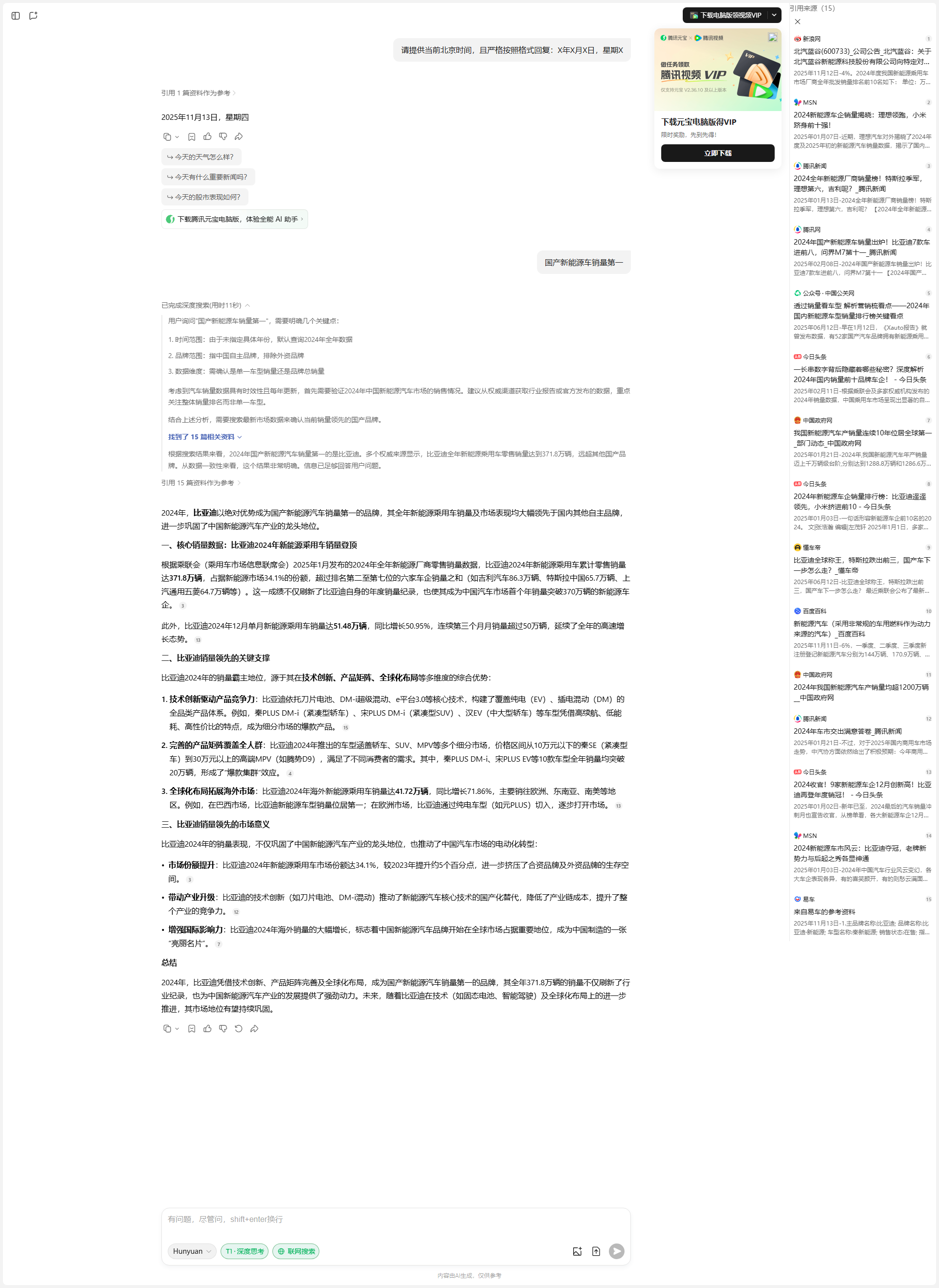 - **技术积累**:比亚迪拥有自主研发的“刀片电池”(解决续航与安全痛点)、“DM-i超级混动”(实现燃油经济性与动力兼顾)两大核心技术,覆盖纯电、混动全品类;