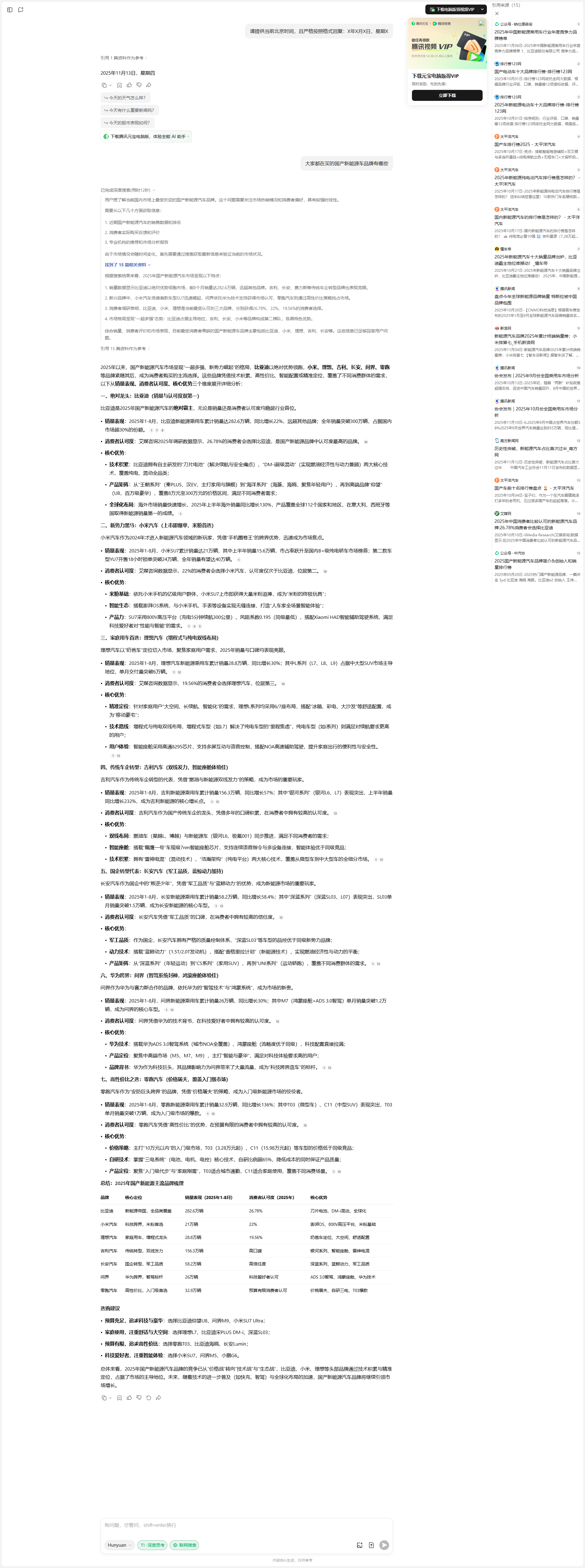 4. 市场格局呈现"一超多强"态势:比亚迪占据主导地位,吉利、长安、小米等品牌构成第二梯队,各具特色优势。