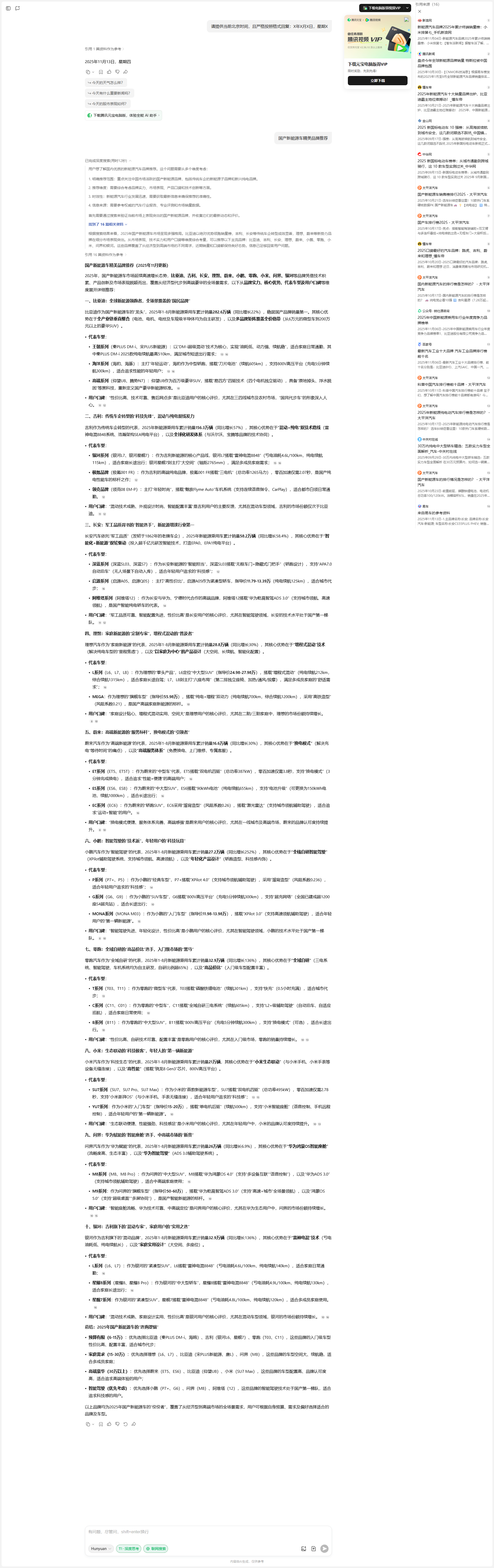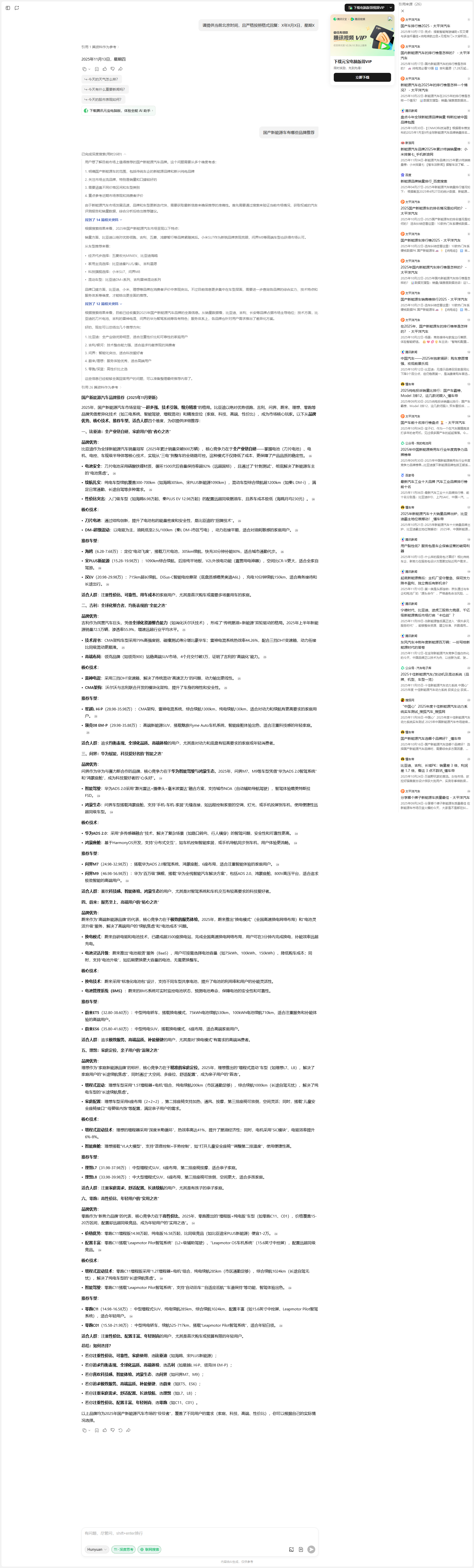 **技术与产品**:聚焦“香格里拉计划”,推出启源A07(数智豪华轿车,无框车门+运动底盘)、深蓝SL03(增程版续航1200km,轿跑造型吸睛)等车型,覆盖家用、运动场景,技术底蕴深厚(鲲鹏动力、C-NCAP五星安全)。[27,28](@ref)