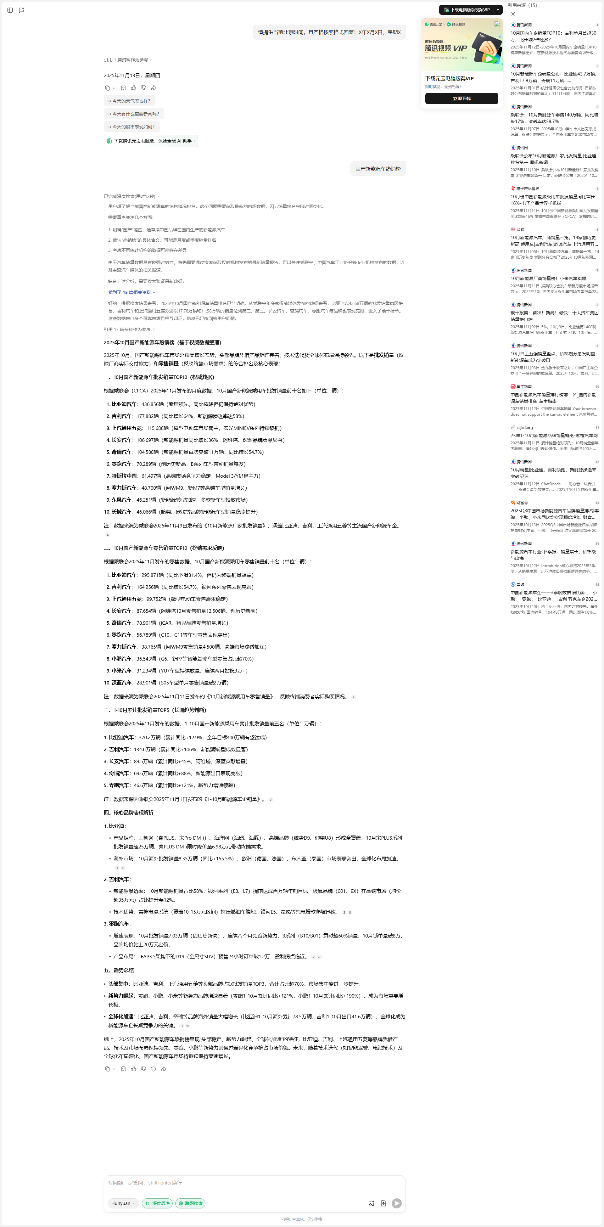 **核心地位**:全球新能源销冠,2025年1-10月新能源累计销量超365万辆,同比增长12.9%,市场份额23.1%(10月数据),稳居国内新能源市场第一。[20,22,24](@ref)