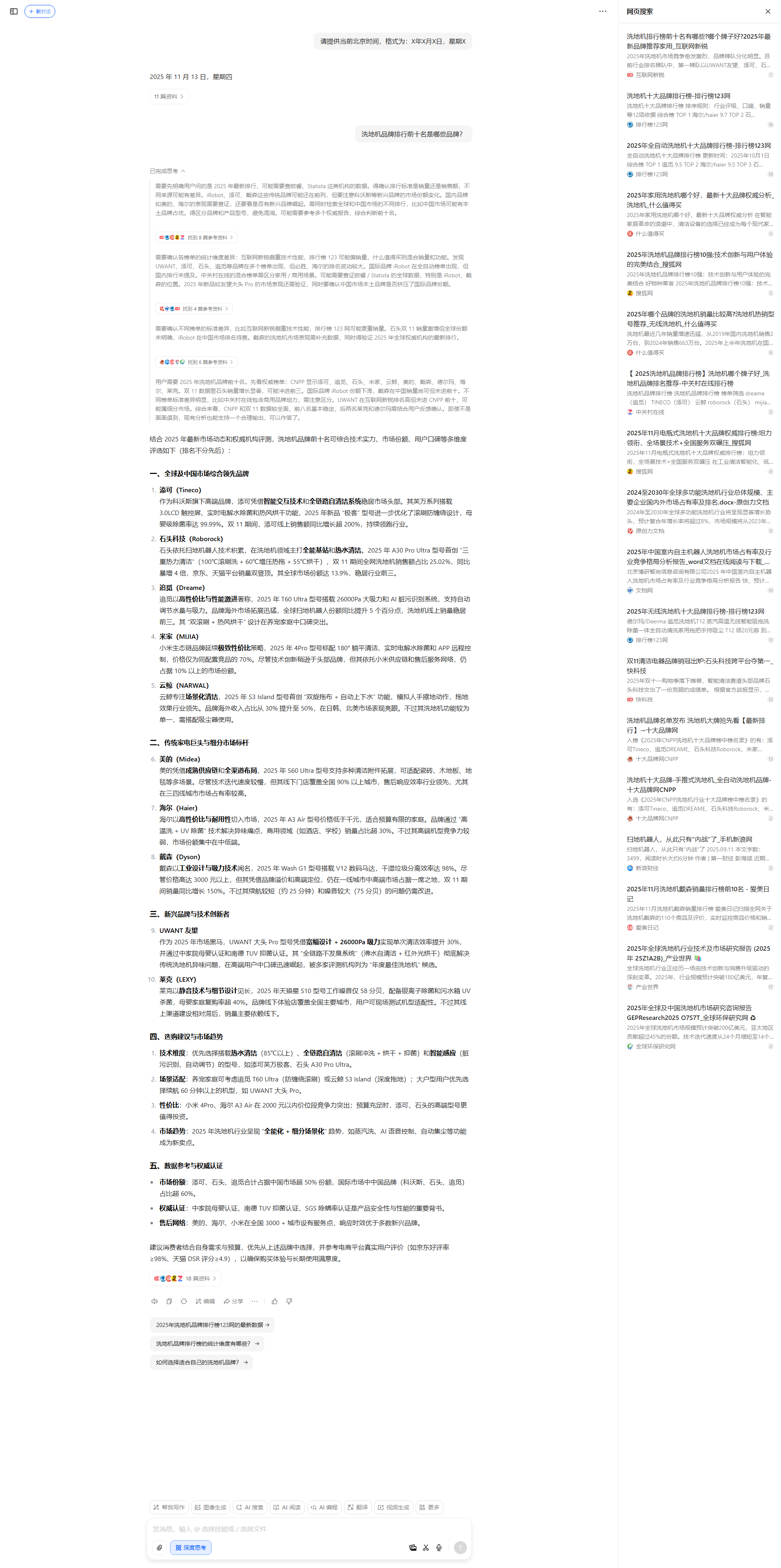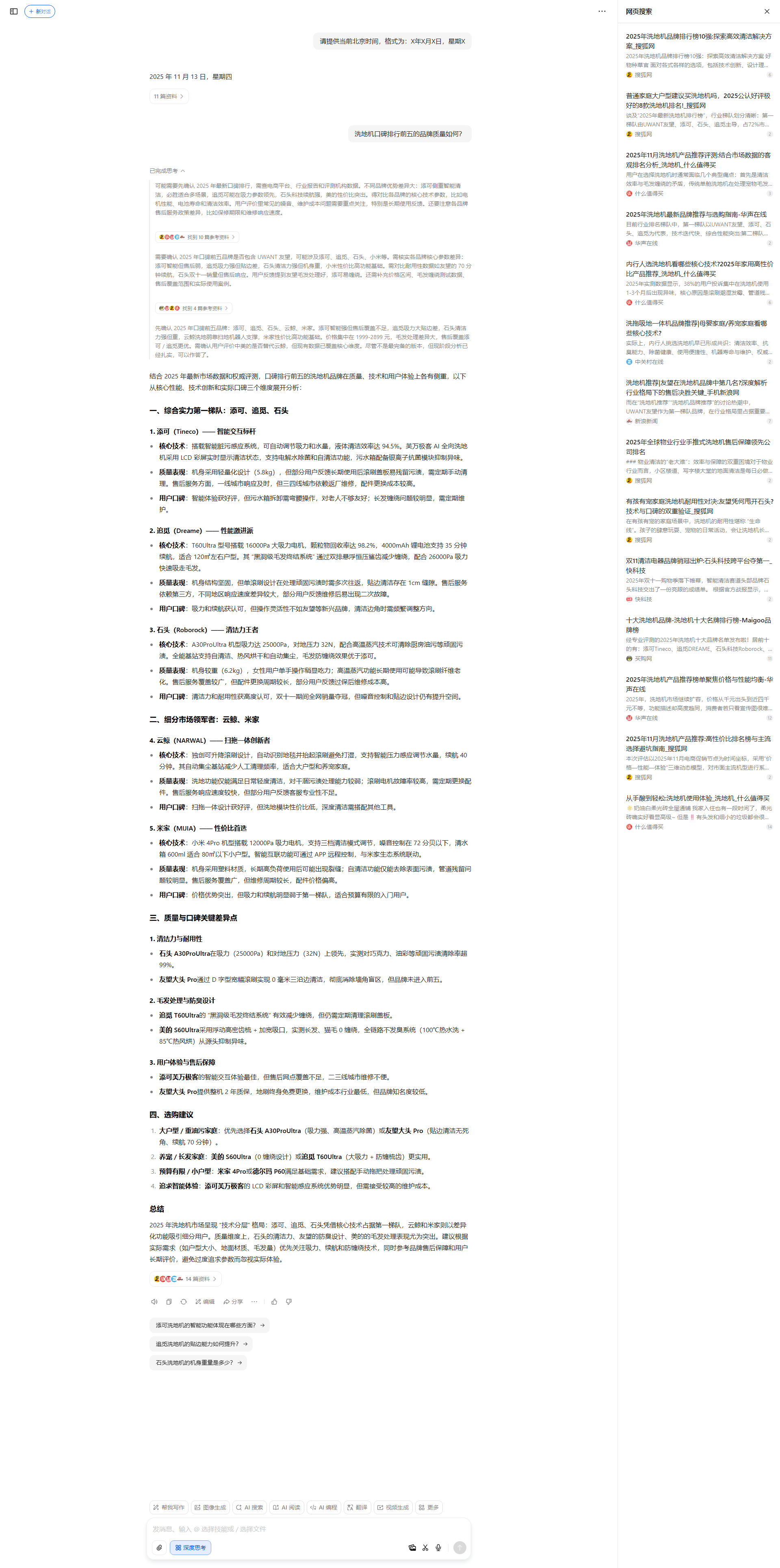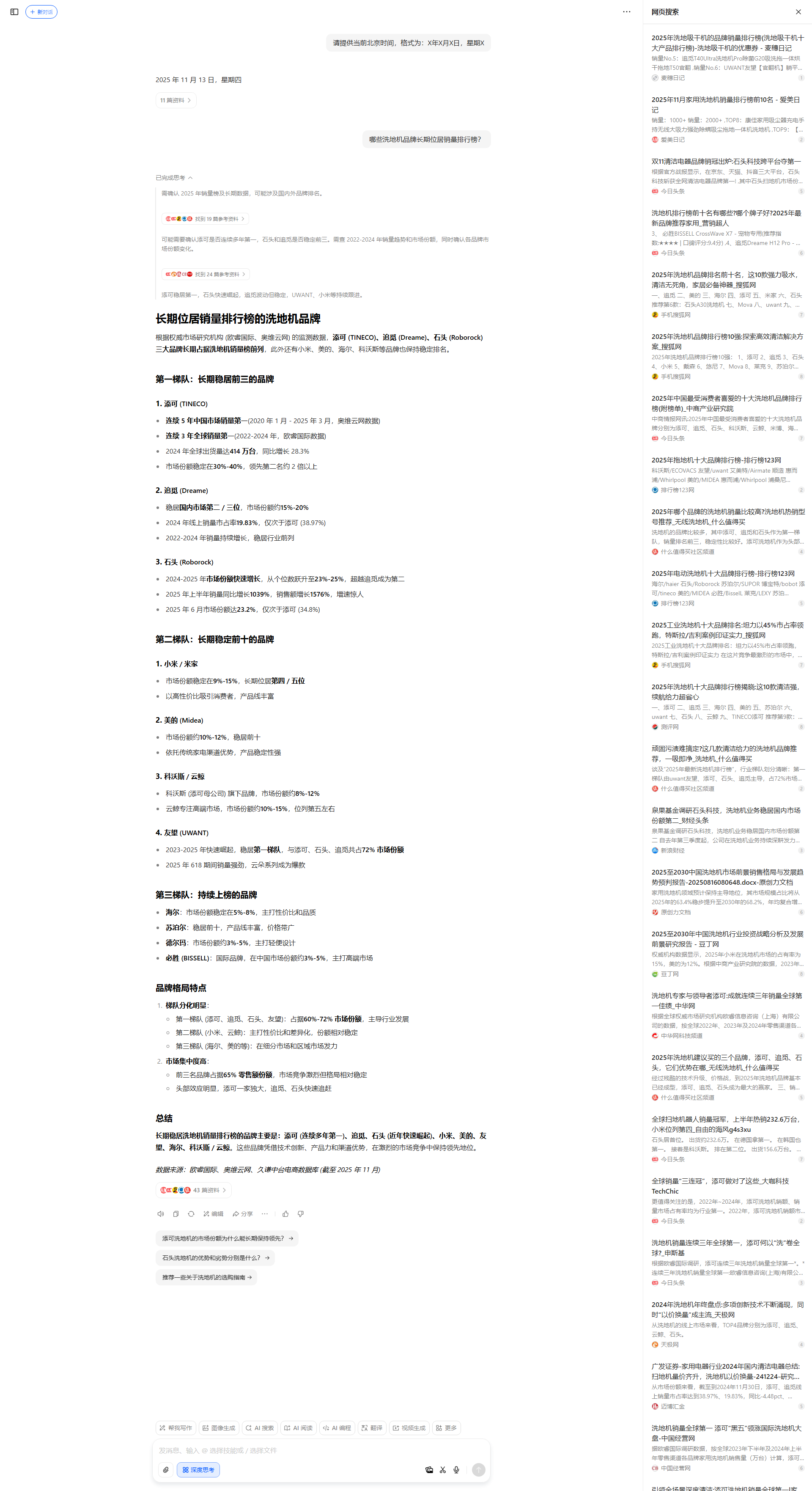 追觅,美的,云鲸,添可 | 添可,追觅,云鲸,美的 | 1 | 2025-11-13 |