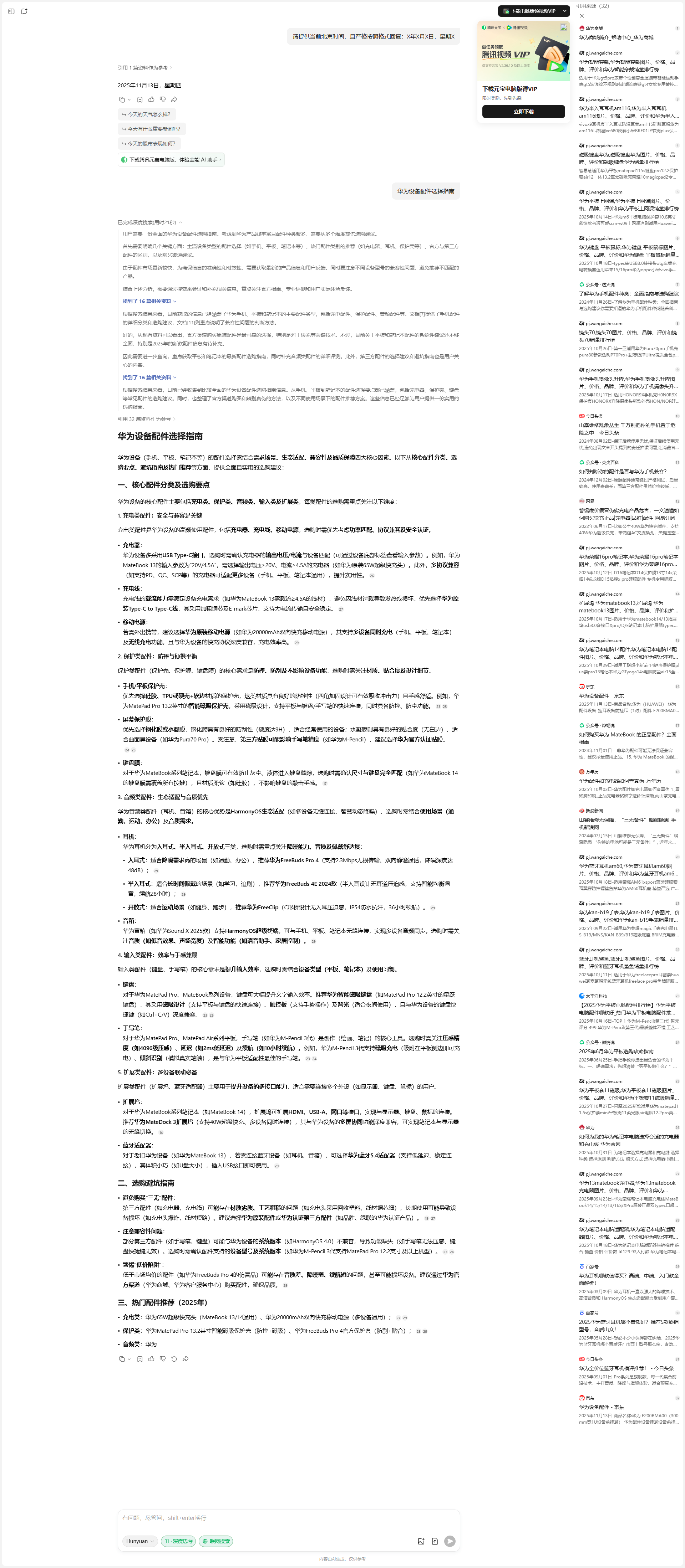 用户需要一份全面的华为设备配件选购指南。考虑到华为产品线丰富且配件种类繁多,需要从多个维度提供选购建议。