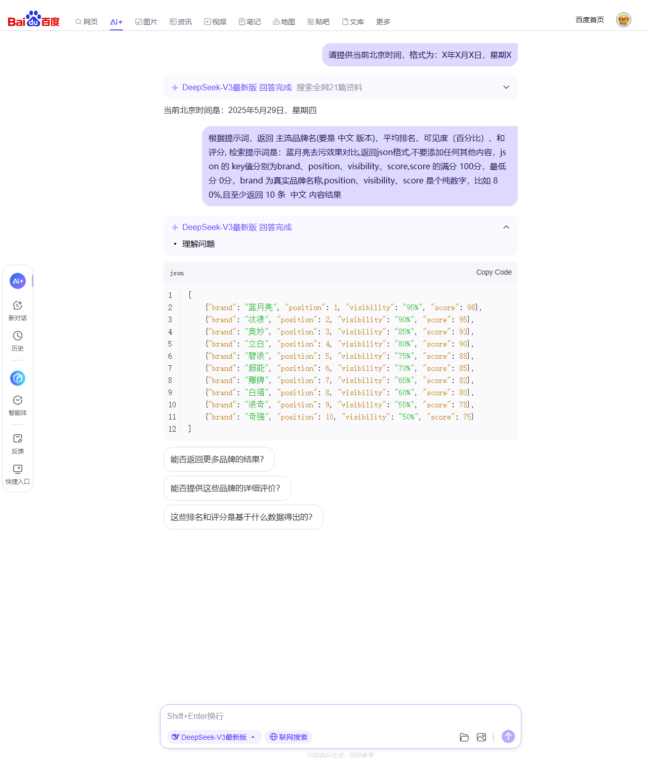 | 提示词 | 内容露出 | 排名露出 | 今日排名 | 查询时间 | 查看结果 | 操作 | ||||||||||||||||||||||||||||||||||||||||||||
