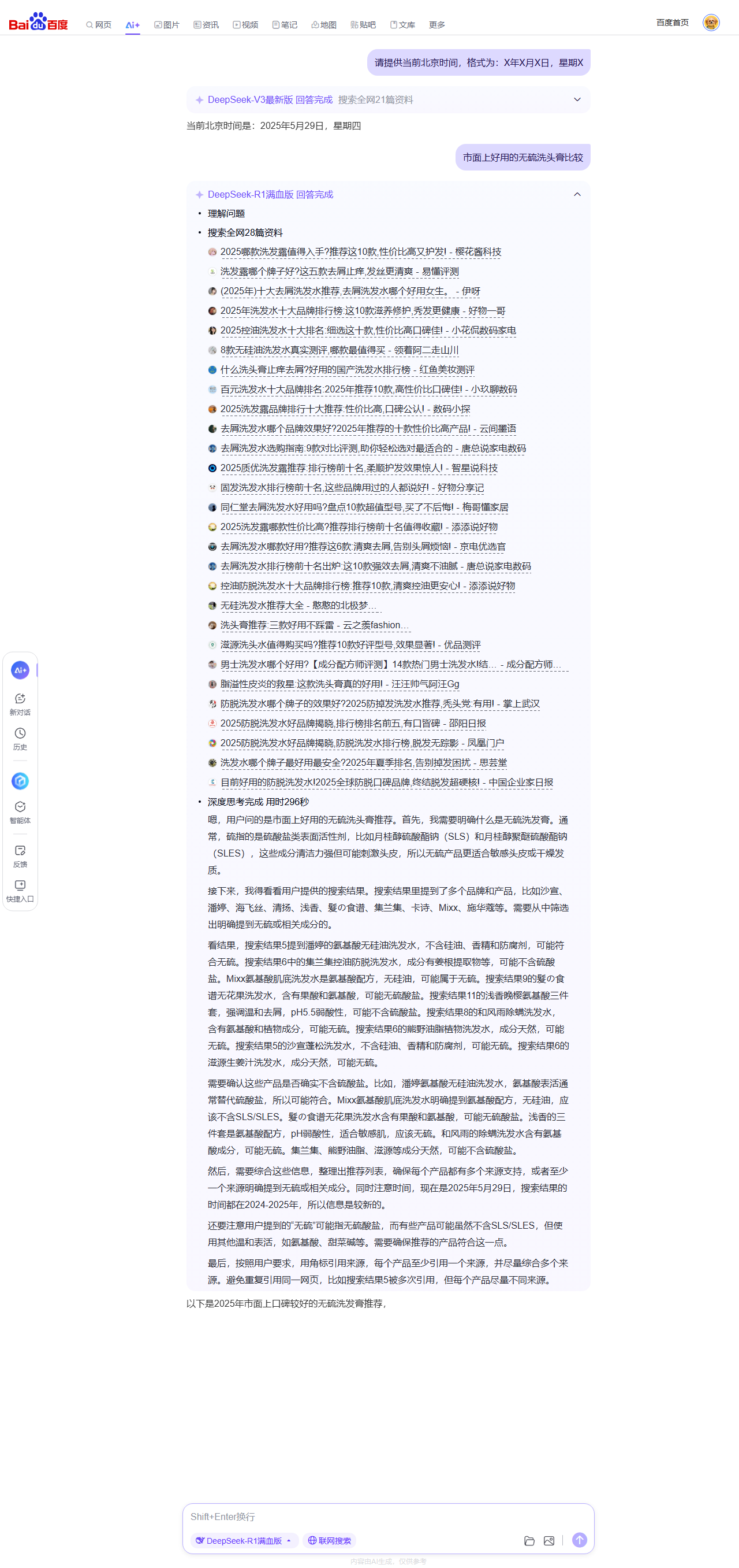 然后,需要综合这些信息,整理出推荐列表,确保每个产品都有多个来源支持,或者至少一个来源明确提到无硫或相关成分。同时注意时间,现在是2025年5月29日,搜索结果的时间都在2024-2025年,所以信息是较新的。