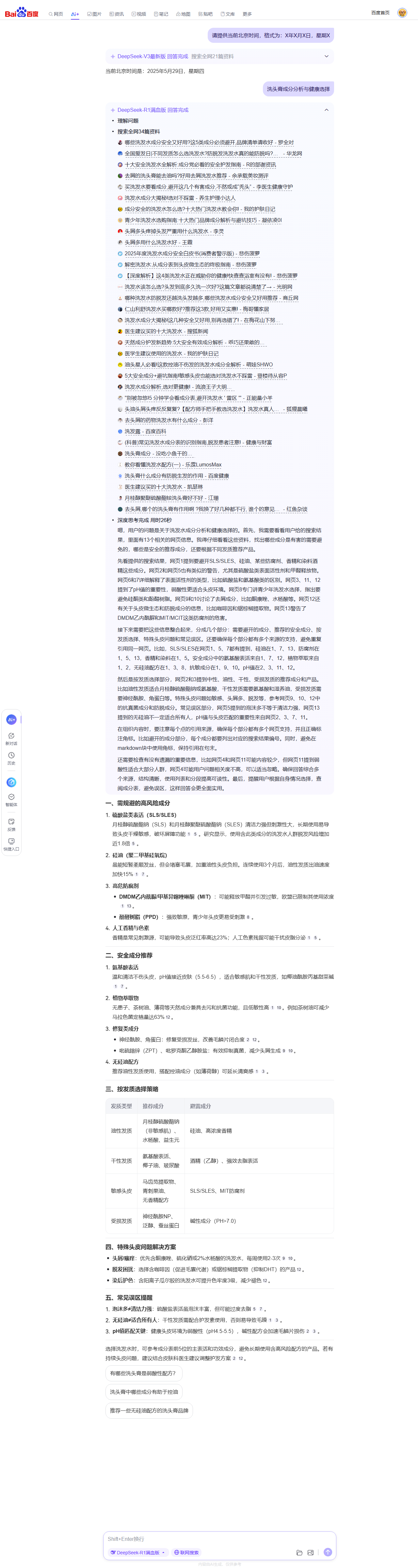 嗯,用户的问题是关于洗发水成分分析和健康选择的。首先,我需要看看用户给的搜索结果,里面有13个相关的网页信息。我得仔细看看这些资料,找出哪些成分是有害的需要避免的,哪些是安全的推荐成分,还要根据不同发质推荐产品。